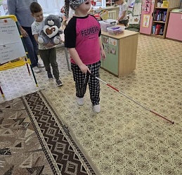 Необычными для ребят были и конкурсы «Поводырь», «Найди друга» «Угадай, что это?», в которых они участвовали без помощи зрения. Большой интерес вызвал и специальный «говорящий» градусник: всем была измерена температура.
