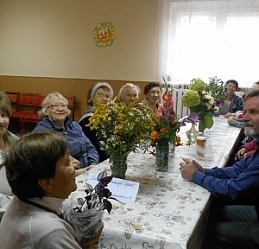 На встрече в клубе "Домашний очаг" при Ивановской МО ВОС была проведена программа "Цветочный букет", подготовленная группой стационарного обслуживания по просьбе руководителя клуба Галины Викторовны Дороговой. Украшением сентябрьского занятия стали букеты цветов, выращенные на участках любителей садоводов-огородников, членов клуба "Домашний очаг". Цветы даруют не только красоту, но ещё и дружат с человеком: врачуют, указывают дорогу, стерегут подземные клады, подсказывают погоду. Они и на пепелища приходят первыми, дают силы подняться лесам - «лёгким» нашей планеты. Собравшиеся не только узнали несколько легенд, созданных человечеством о таинственном происхождение некоторых цветов, ознакомились с тем, как обожествляют народы мира свои любимые цветы, какие государства имеют гербы с изображением цветов; но и приняли участие в викторине "Литературный букет", песенном цветочном конкурсе (спев вместе по куплету угаданные), погадали на ромашке, отвечая на её вопросы, и подтвердили слова народной мудрости «Кто выращивает цветы, тот приносит радость себе и людям».