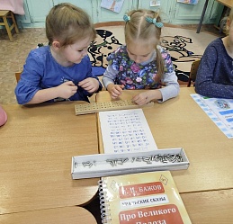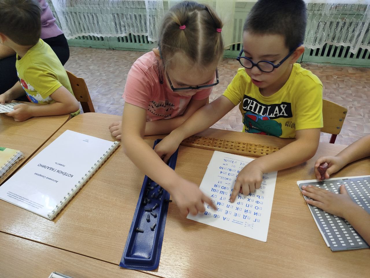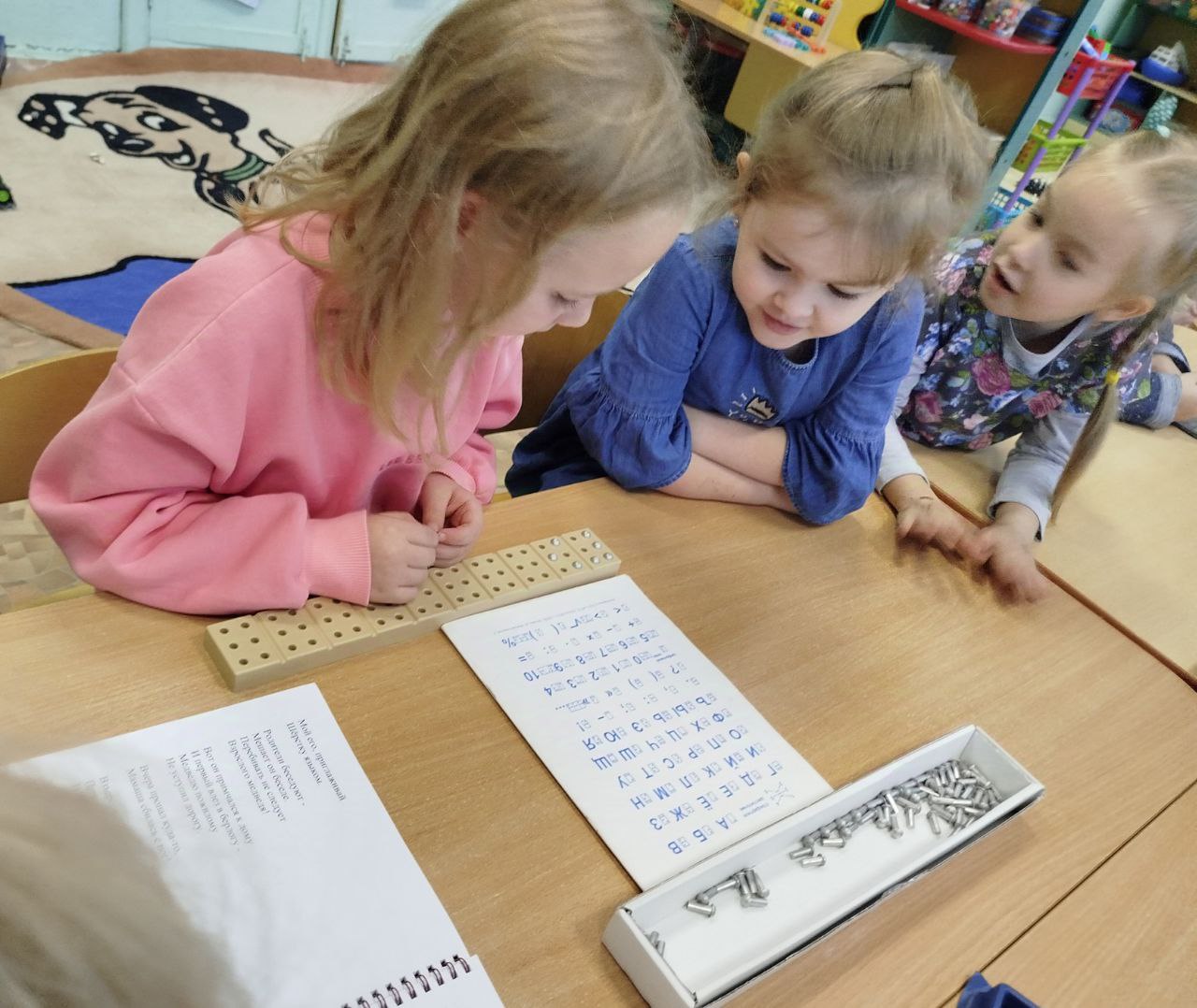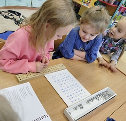 В детском саду компенсирующего вида №7 (г. Кинешма) воспитанники подготовительной группы стали участниками познавательно-практического урока «Спасительный шрифт Брайля», подготовленног7о Кинешемским филиалом №1 в рамках месячника Белая трость.
