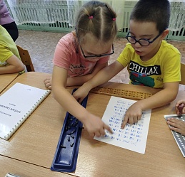 Ребята узнали, почему символом незрячих людей стала белая трость, познакомились с брайлевским алфавитом, уникальными книгами, напечатанными шрифтом Брайля, с рельефными изображениями, которые помогают незрячим детям изучать школьные предметы.