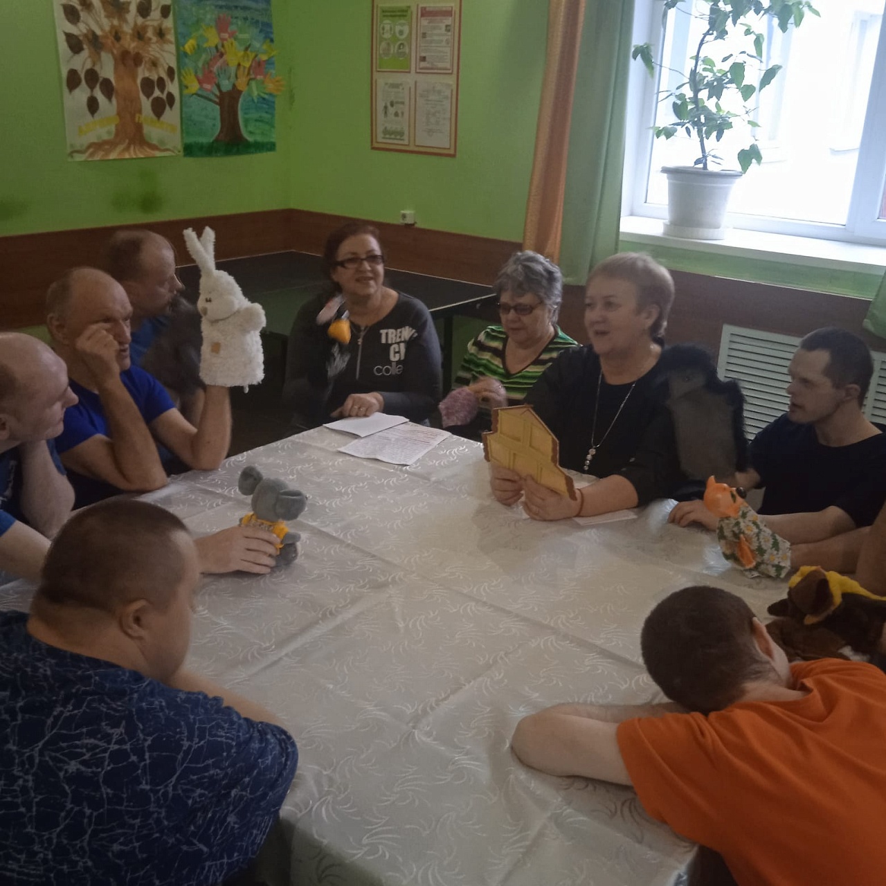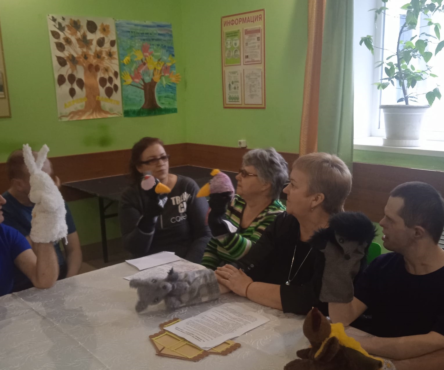 Участники встречи погрузились в волшебный мир театра, примерили на себя роль сказочных героев. С помощью использования кукол «Би-ба-бо» инсценировали русскую народную сказку «Теремок», разыграли кукольный спектакль по мотивам сказки Юлии Кузнецовой «Сказка про сороку, которая не говорила слово «пожалуйста».