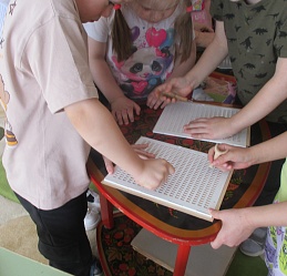 Воспитанники старшей группы детского сада №14 «Колокольчик» совершили познавательное и увлекательное путешествие в мир книг для людей с нарушениями зрения. Татьяна Виноградова, ведущий библиотекарь Шуйского филиала № 2, рассказала о разнообразных специальных изданиях для юных и взрослых читателей библиотеки, некоторые книги были продемонстрированы. Дети ознакомились с биографией французского тифлопедагога Луи Брайля, создателя системы грамотности для незрячих. Особый интерес у детей вызвали рукодельные тактильные книги, помогающие их незрячим сверстникам познавать окружающий мир; также специальный прибор для письма и тетради. Ребята попробовали самостоятельно с помощью грифеля написать на приборе некоторые буквы. Очень интересен детям стал и «говорящий» градусник: всем была измерена температура. Кроме того, ребята с удовольствием приняли участие в играх «Поводырь», «Найди друга», «Угадай, что это?», которые позволили им, в том числе, узнать о том, как ориентируются в пространстве незрячие люди (дети прошли по залу с закрытыми глазами с белой тростью). В течение всего занятия дошкольники были активны и теперь они имеют представление о помощниках незрячих детей и взрослых. Ребята приняли самое активное участие в мероприятии, позволившее им узнать о различных помощниках, делающих жизнь незрячего человеке полноценной и комфортной.
