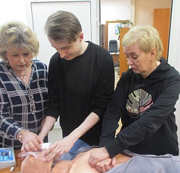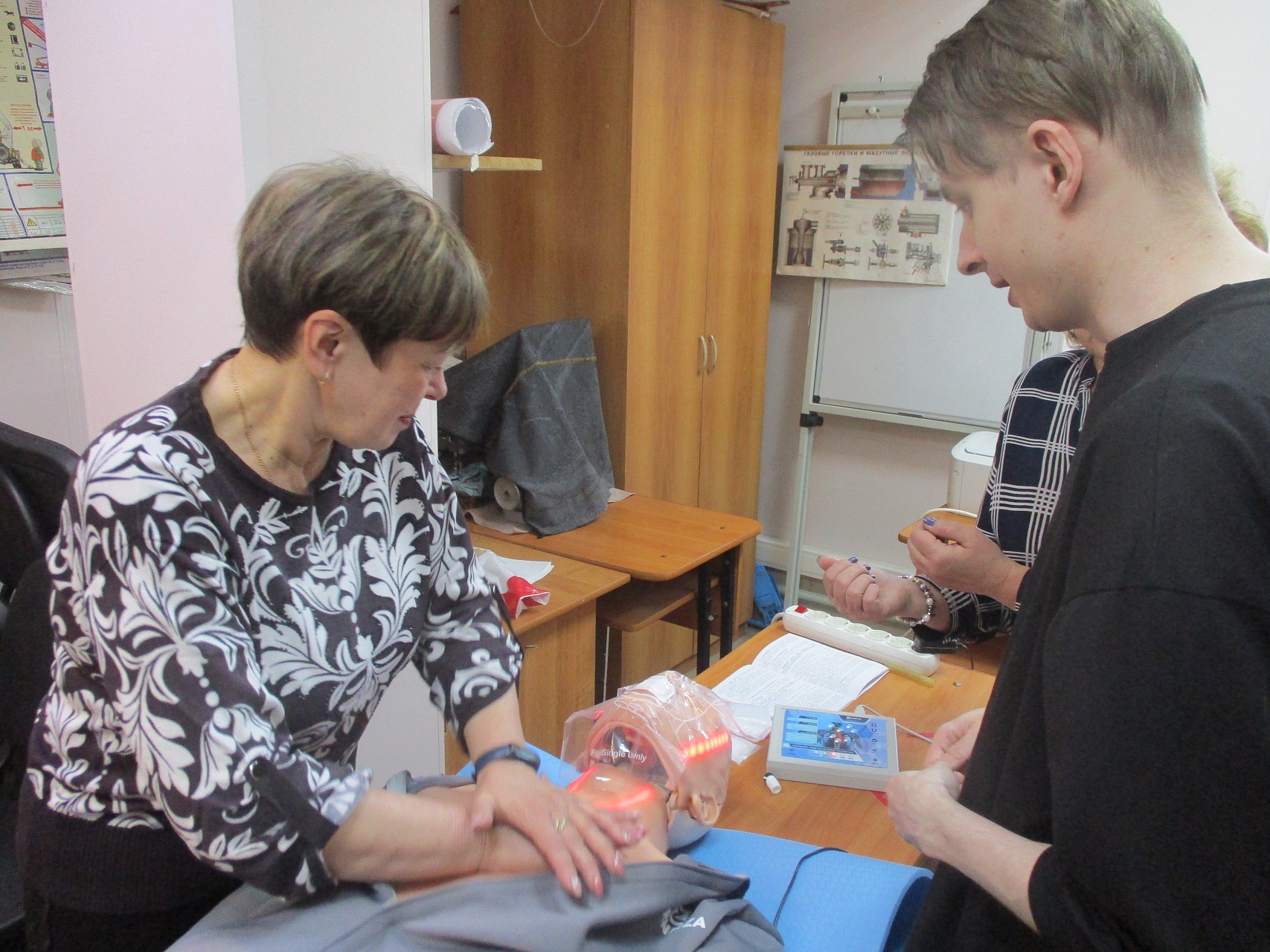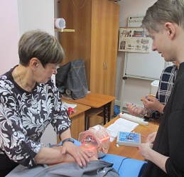 Коллектив библиотеки принял участие в практическом занятии по обучению методам и приёмам оказания первой помощи пострадавшим, которое состоялось в Центре подготовки «Безопасность труда». Балясова Лариса Анатольевна рассказала об основных приёмах и правилах поведения работников, направленных на сохранение жизни каждого пострадавшего до прибытия спасательных служб и скорой помощи, продемонстрировав их на манекене. Полученную информацию сотрудники библиотеки практически применили на манекене с разбором правильности действий по оказанию первой помощи.
