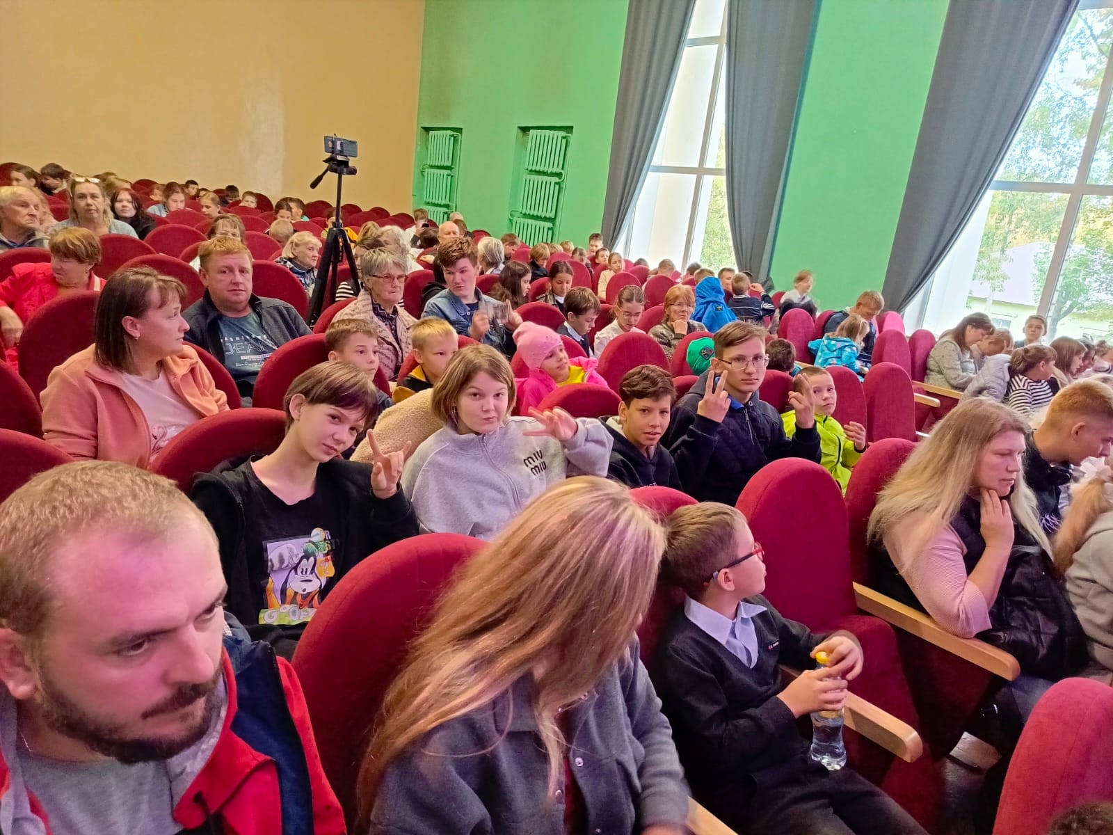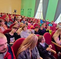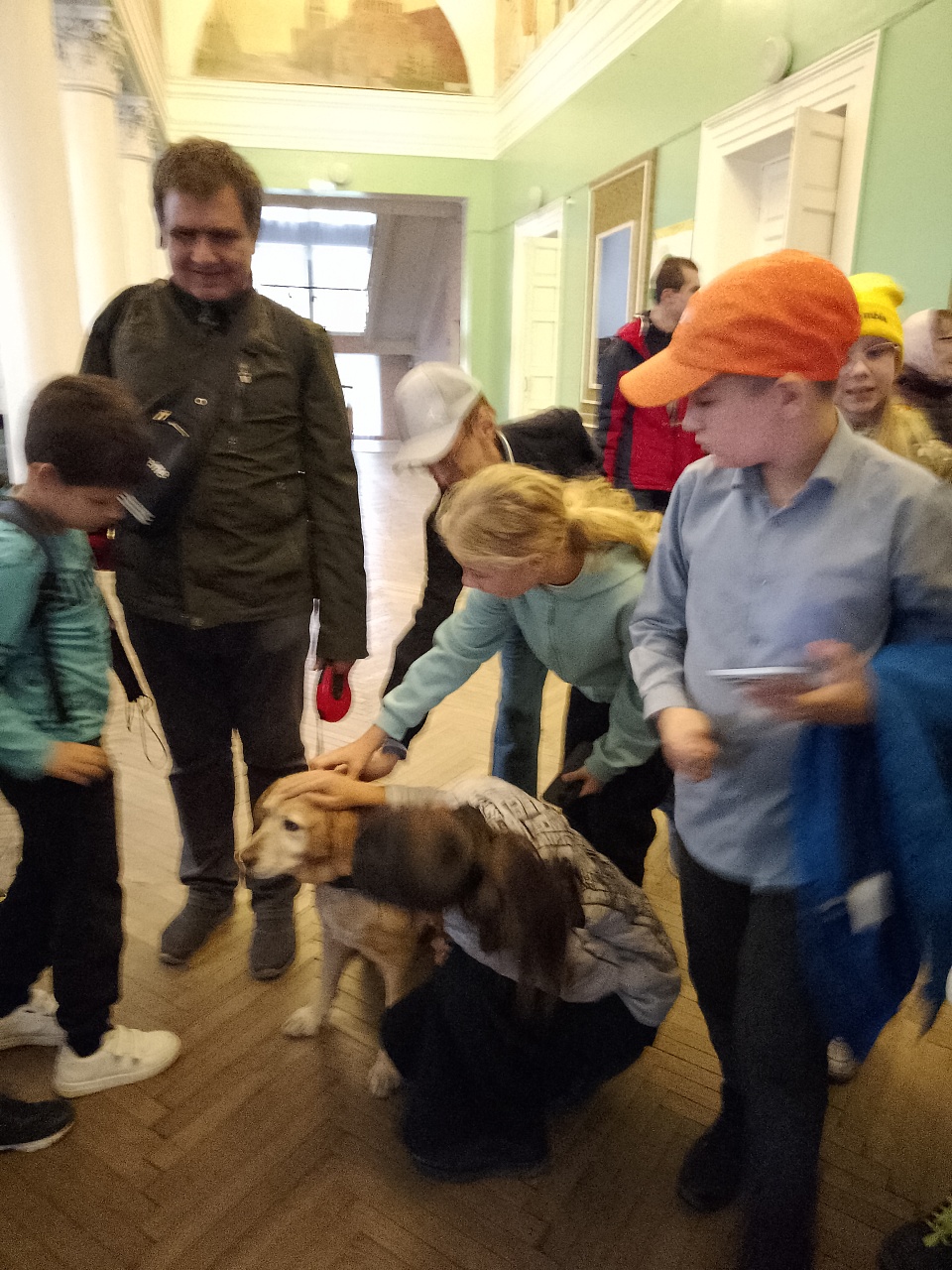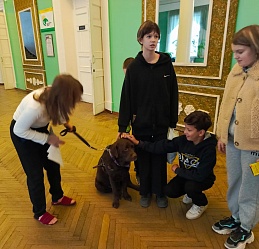 Закрылся занавес, но знакомство продолжилось в фойе актового зала – юные гости праздника общались с именинниками этого дня Екатериной Панковой, Дмитрием Зариповым, Светланой Каретиной и их верными спутниками жизни Риччи, Таби и Флаем.