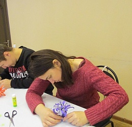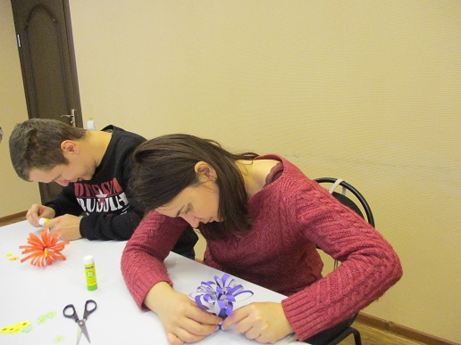 После просмотра видеоролика на стихотворение Расула Гамзатова «Мама» беседовали с участниками занятия о том, как мама важна в их жизни, какой у неё характер и что мамы для каждого из нас – это ангелы, оберегающие своих детей, даже и для повзрослевших. Со вниманием и радостью посмотрели мультипликационный фильм «Облачно с прояснением» о том, как аисты приносят детёнышей для людей, животных и птиц, рождённых на небесах облаками-тучками; разгадывали кроссворды, предварительно вспомнив пословицы, поговорки и отгадав загадки о маме и её домашних заботах. В завершении занятия кропотливо трудились над изготовлением из бумаги красочных букетов – подарков для своих мам. Нет сомнения, что творческий подарок, в котором и труд, и любовь, самый ценный для родного человека, имя которому – мама.