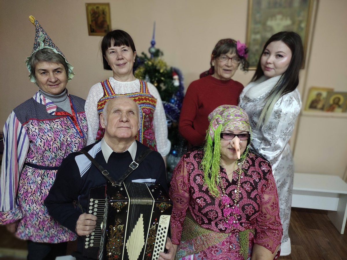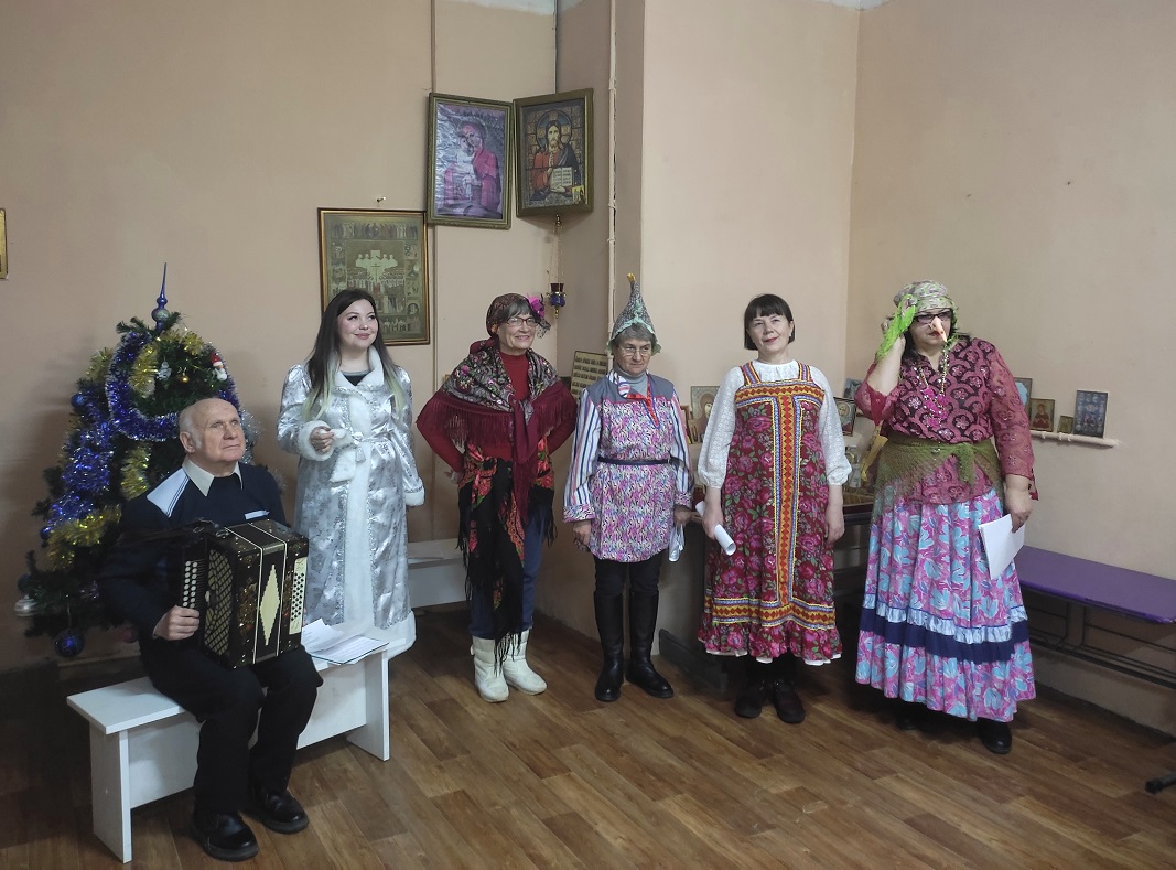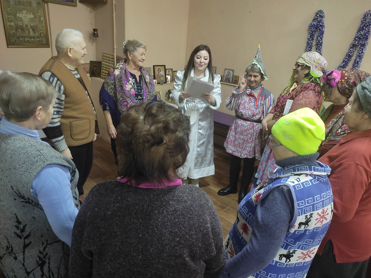 Участники встречи вместе с ведущими отправились в увлекательное путешествие в историю, где узнали традиции празднования Святок. Не обошелся вечер и без традиционных крещенских игр, конкурсов, гаданий, песен и плясок.