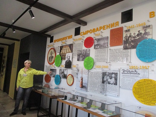 В один из дней осенних каникул, 1 ноября, группа членов библиотечного семейного клуба «Родительский лицей» отправилась на экскурсию в уникальный музей – Музей сыра, который в начале прошлого года открыл в Иванове Пучежский сыродельный завод, крупнейшее предприятие молочной промышленности Ивановской области. Экскурсовод Людмила Николаевна Бобылёва увлекательно рассказала об истории возникновения сыра и развитии сыроделия в мире и в нашей стране; прозвучали имена людей, благодаря которым в дореволюционной России эта отрасль пищевой промышленности успешно развивалась - это Николай Васильевич Верещагин, создатель в 19 веке новой отрасли русского народного хозяйства «масло- и сыроделия», инициатор крестьянского «артельного маслоделия», выросшего в крупнейшее кооперативное движение России.