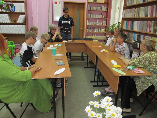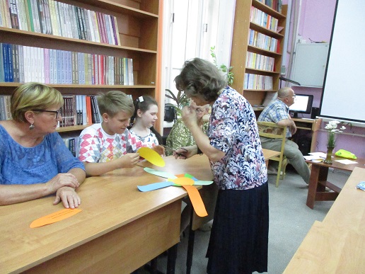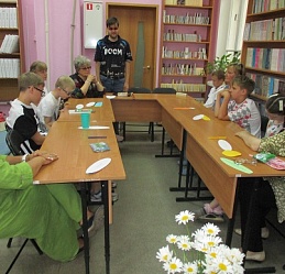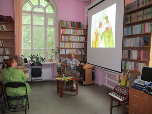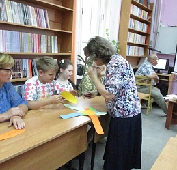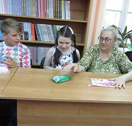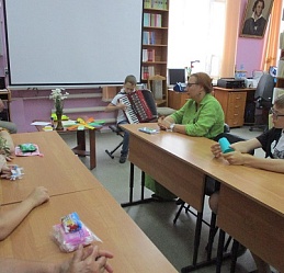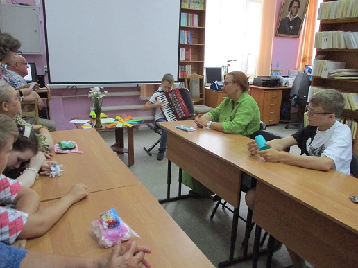 Сегодня в библиотеке у нас тоже был праздник. Группа членов семейного клуба «Родительский лицей» стала участником праздничной встречи «Вся семья вместе - и душа на месте», состоявшейся 8 июля в День семьи, любви и верности. Встречу открыла демонстрация видеоролика «Баллада о Петре и Февронии», напомнившая историю святых Муромских князей, ставших покровителя семьи и брака. Весёлая атмосфера праздника сопровождала выполнение детьми и взрослыми различных заданий: на знание поговорок и пословиц,загадок о цветах – этого непременного летнего атрибута. «Кот в мешке» подарил всем необходимые предметы каждого дома; разноцветные лепестки рукотворного цветка предложили различные задания; а на лепестках ромашки каждый написал слова о том, что должно быть в каждой семье - это взаимопонимание, любовь, мир, дружба. Пришлось кстати и совместное исполнение песни Шаинского «Если с другом вышел в путь». В ходе встречи в исполнении читателя библиотеки Савелия Сябукова под аккордеон прозвучали музыкальные композиции. Илья Бушуев, Костя Назаров и Лиза Бусыгина также к радости гостей исполнили ряд песен. Общение продолжилось за чаепитием в библиотечном семейном кругу со сладким клубничным угощением от семьи Назаровых и поздравлением маму Артёма и Кости Марину Валентиновну Назарову, родившуюся в этот июльский праздничный день 8 июля.