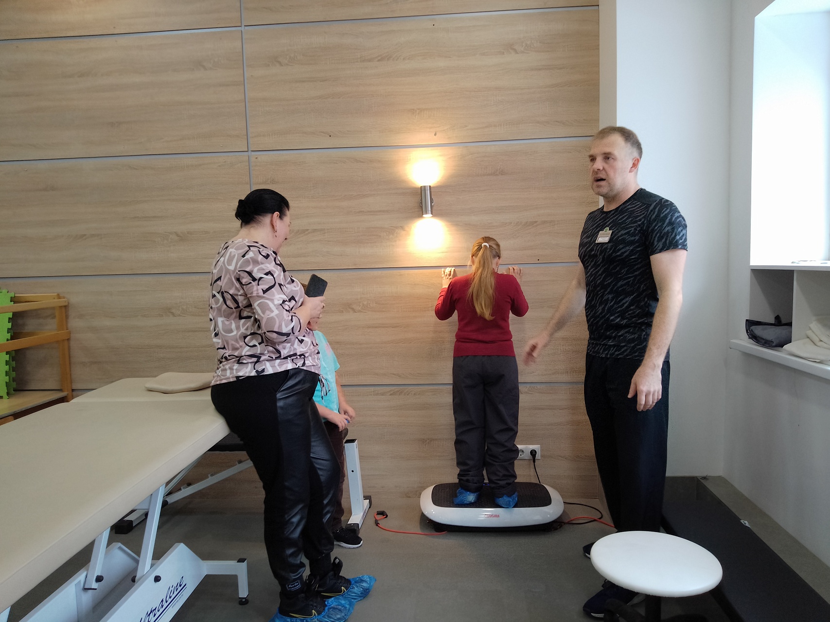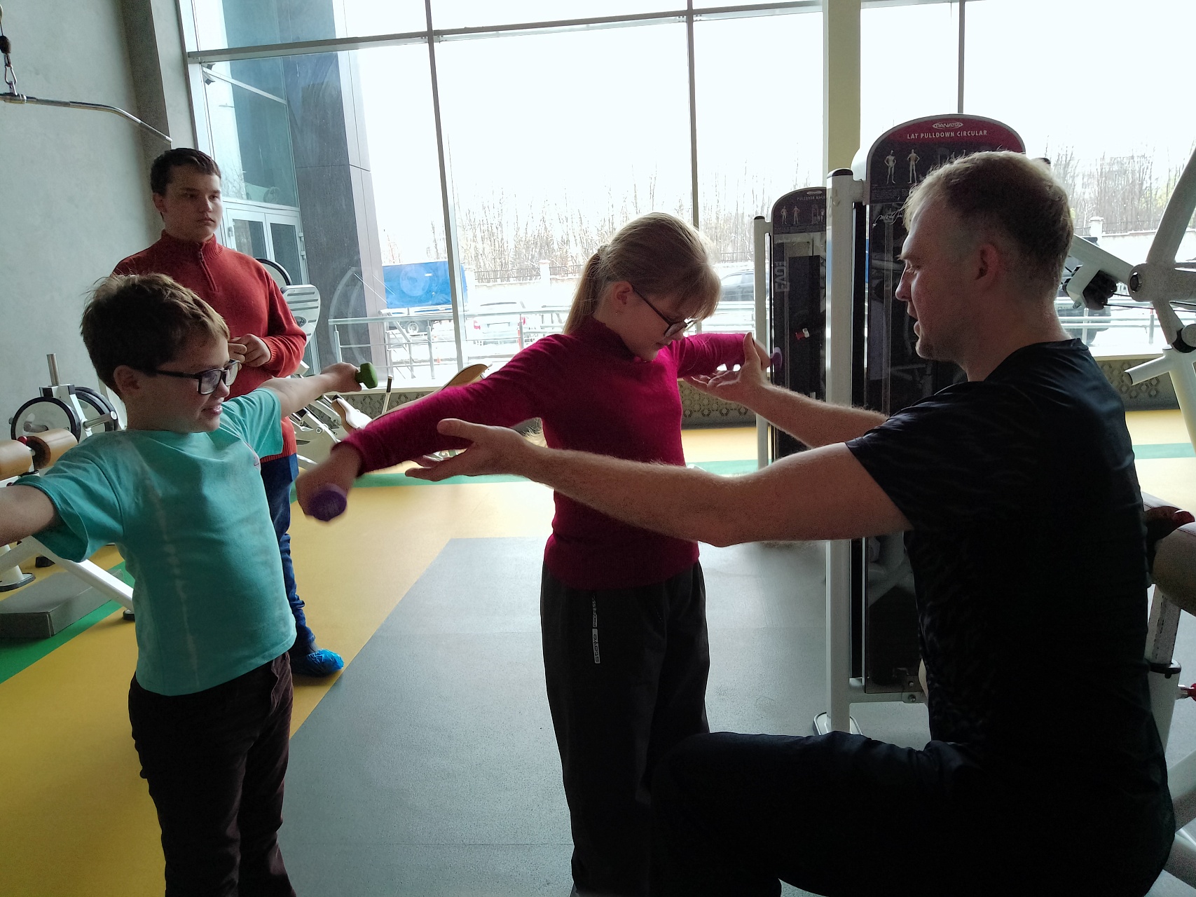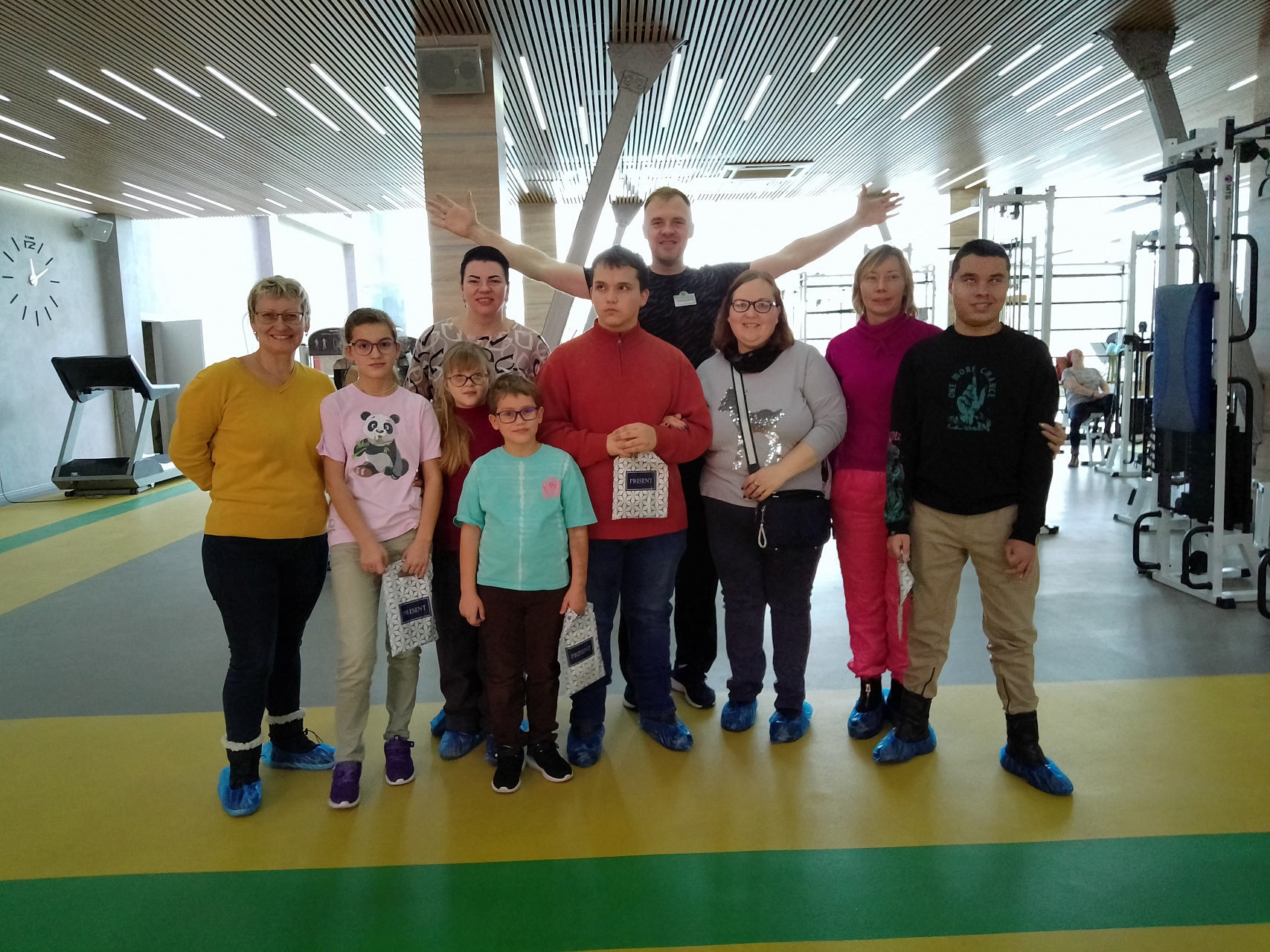 Ребята и родители побывали в бассейне, в комнате Монтессори, ознакомились не только с различными специальными тренажёрами, в том числе, и диагностическими (стабилоплатфома), но и с большим энтузиазмом позанимались на них при сопровождении Ивана Викторовича; получили новые знания о здоровье и физической активности и приятные подарки-бонусы.