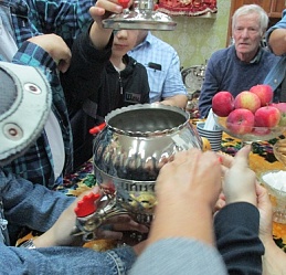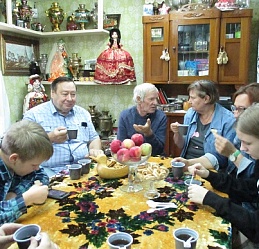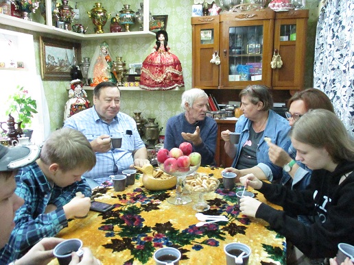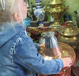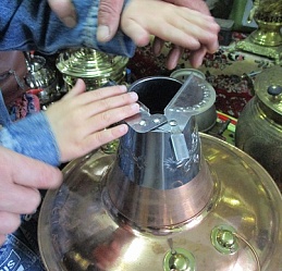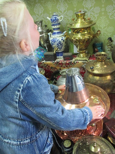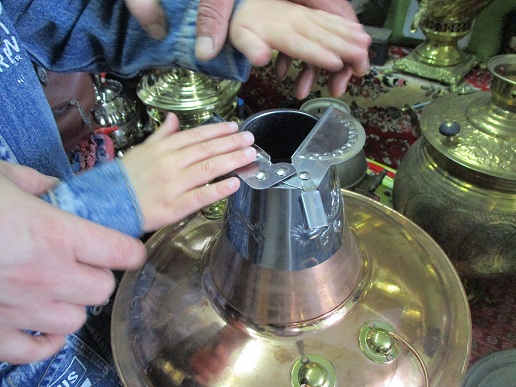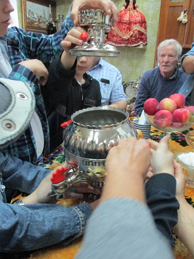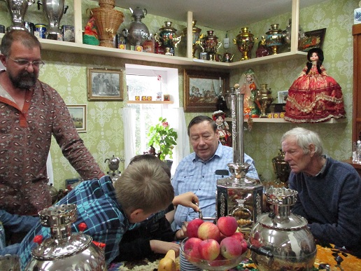 Андрей Николаевич очень подробно рассказывая об истории этого удивительного старинного персонажа русского быта, успевал поставить на стол различные самовары, к которым стазу же тянулись пальцы юных экскурсантов, с восторгом тактильно знакомившихся с ними.