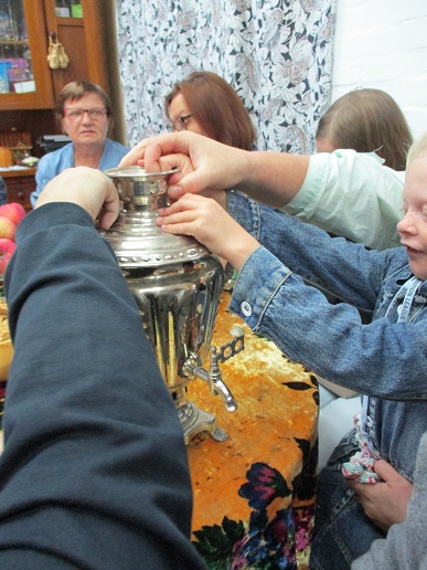 Накануне Дня знаний, 30 августа дождливым пасмурным утром, группа детей-инвалидов и их родителей, членов семейного клуба «Родительский лицей», отправилась в г. Кохму на экскурсию в частный Музей советского Самовара известного ивановского коллекционера Андрея Николаевича Тарасова.