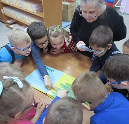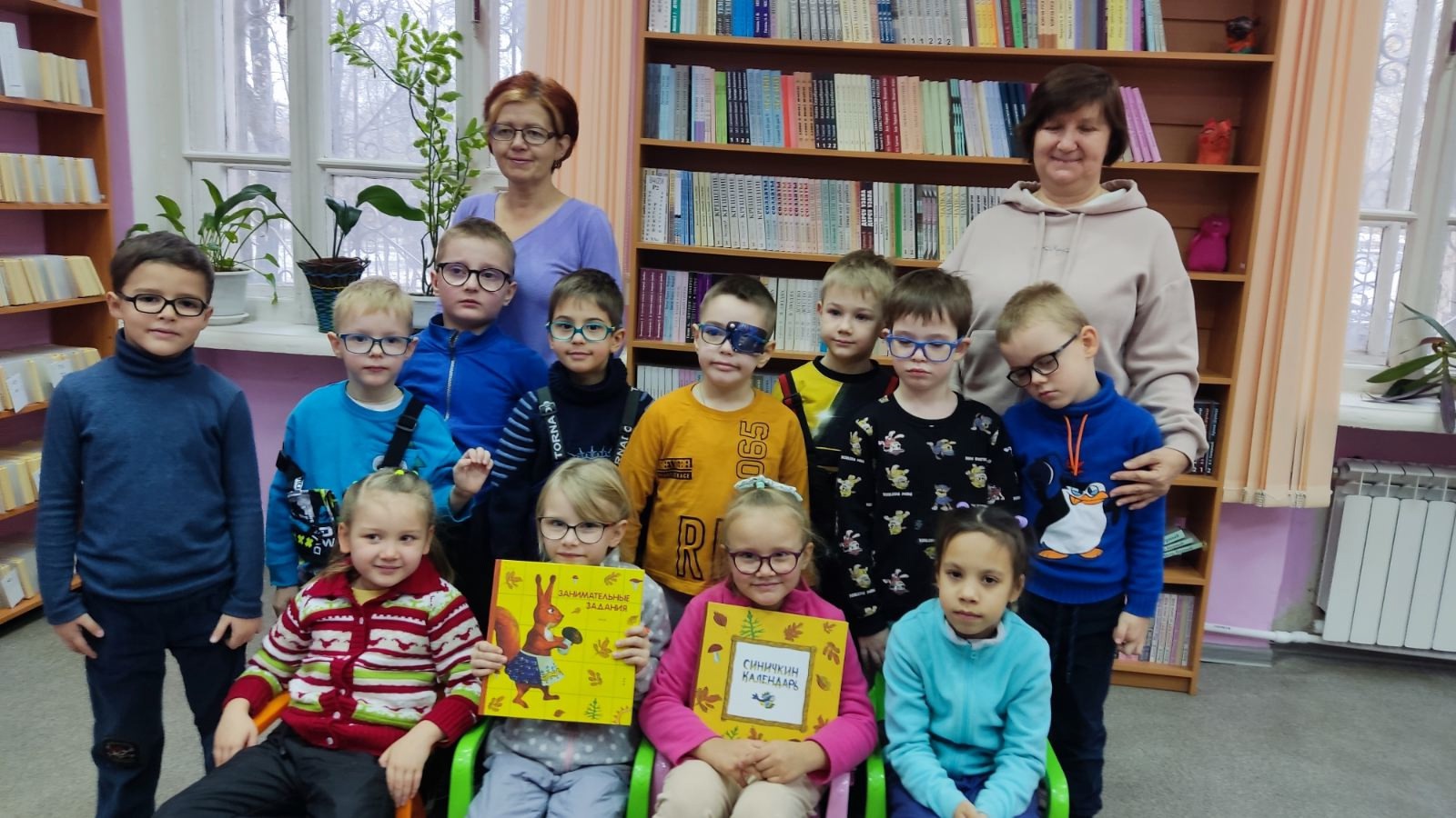 В библиотеку 14 ноября в гости к синичке Зиньке, главному персонажу книжного издания «Синичкин календарь» (серия «Волшебный карандаш») Благотворительного фонда «Книжки для маленьких слепых детей» пришли воспитанники подготовительной группы «Солнышко» детского сада компенсирующего вида № 146.