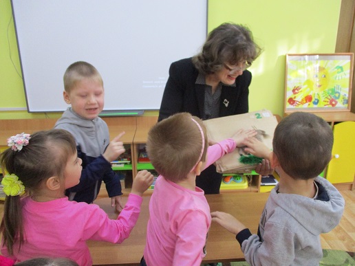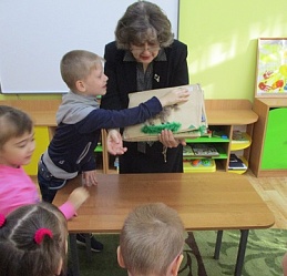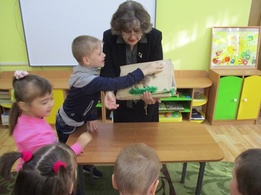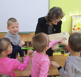 Групповое занятие "Сказкотерапия, или что такое имя?" состоялось 12 октября на базе коррекционного детского дома "Солнышко", которое для группы воспитанников провели учитель-логопед Лариса Стрюкова и главный библиотекарь Августа Виноградова. Посмотрев мультипликационный фильм по сказке Владимира Сутеева "Кто сказал мяу?" дошкольники вспомнили имена персонажей-животных и как кто из них разговаривает. Закрепили свои знания, ознакомившись с рукодельной тактильной книгой "Деревенская считалка". Дети с удовольствием и интересом осязательно различали изображения книжных героев, повторив при этом счёт. С помощью элементов "Театра на палочках" ещё раз закрепили полученные знания о том, что такое имя, и как оно важно и для людей и для всех предметов и явлений окружающего мира. Проведённое занятие было не только интересным и развлекательным, но и познавательным для детей с ограничением жизнедеятельности
