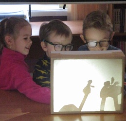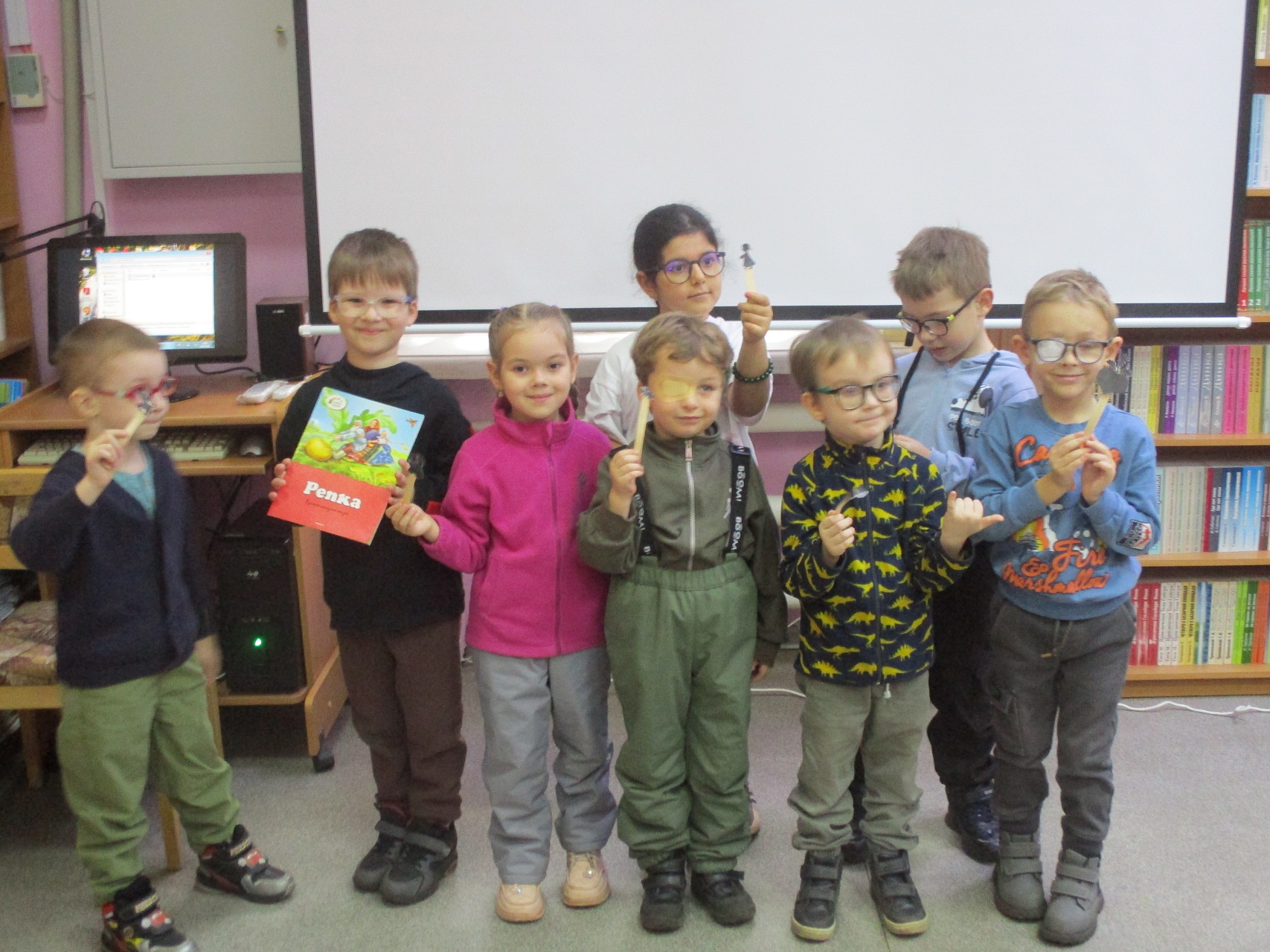 Русскую народную сказку «Репка» в рамках социально-реабилитационного проекта «Учимся видеть и творить прекрасное» разыграли в театре теней воспитанники старшей группы детского сада компенсирующего вида № 146. Спектаклю предшествовало общение с читающей машиной SARA, задавшей детям загадки о русских народных сказках; юные артисты успешно справились с заданием «говорящего» библиотечного жителя. Прежде, чем прозвенел театральный звонок, дети оживили в памяти действия сказки, посмотрев черно-белый мультипликационный фильм «Репка» 1936 года выпуска. И вот распределены роли, состоялась репетиция и начался спектакль с активным участием зрителей – педагогов детского сада и сотрудников библиотеки. Старание артистов-дебютантов было вознаграждено аплодисментами. Гости ознакомились и экспонатами будущей выставки - портретами собак-проводников незрячих читателей. Таким необычным, насыщенным было очередное посещение библиотеки детей и педагогов коррекционного учреждения, многолетнего социального партнёра.