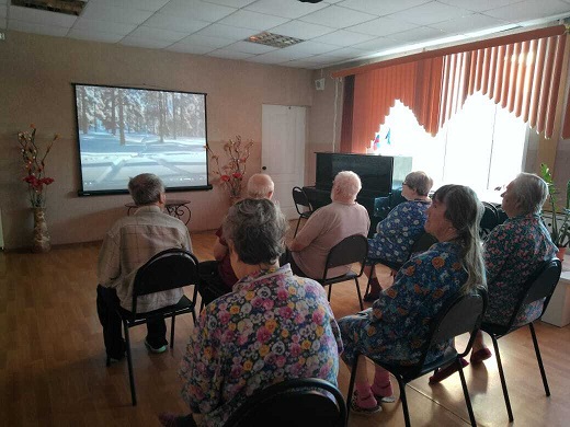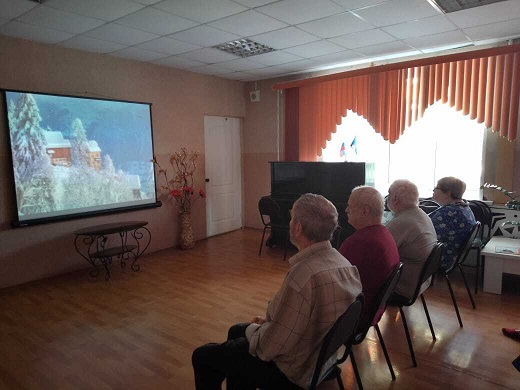Мероприятие прошло в теплой атмосфере, пожилые люди душевно отдохнули, пообщались. Песенные клипы и стихотворения о красоте русской зимы, о новогодних чудесах и обо всём том, что связано с Новым годом, способствовали позитивному настроению у участников просмотра.