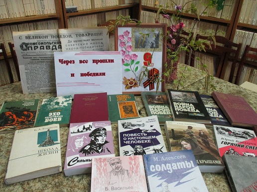 Хранителями памяти поколений выступают книги о Великой Отечественной войне. Книги о войне – духовное продолжение реальных событий. В Шуйском филиале № 2 оформлена тематическая книжная выставка «Через все прошли и победили», на которой представлена историческая и художественная литература, посвященная Великой Отечественной войне (издания плоскопечатного и укрупнённого шрифта).
