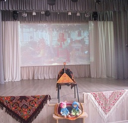 Рассказ об одном из самых весёлых народных славянских праздников, традициях и обрядах русской старины, особой песенной культуры, связанных с каждым днём Масленицы, также о запечатлённых художниками на своих картинах старинных играх Сырной седмицы, сопровождался демонстрацией песенных видеоклипов различных фольклорных групп. Слушатели и зрители с азартом сыграли в старинную шуточную игру-кричалку «Блины-Лепёшки», плясали и у с удовольствием приняли угощение – сладости и блины из рук русской красавицы.