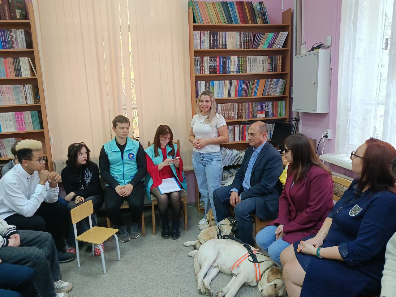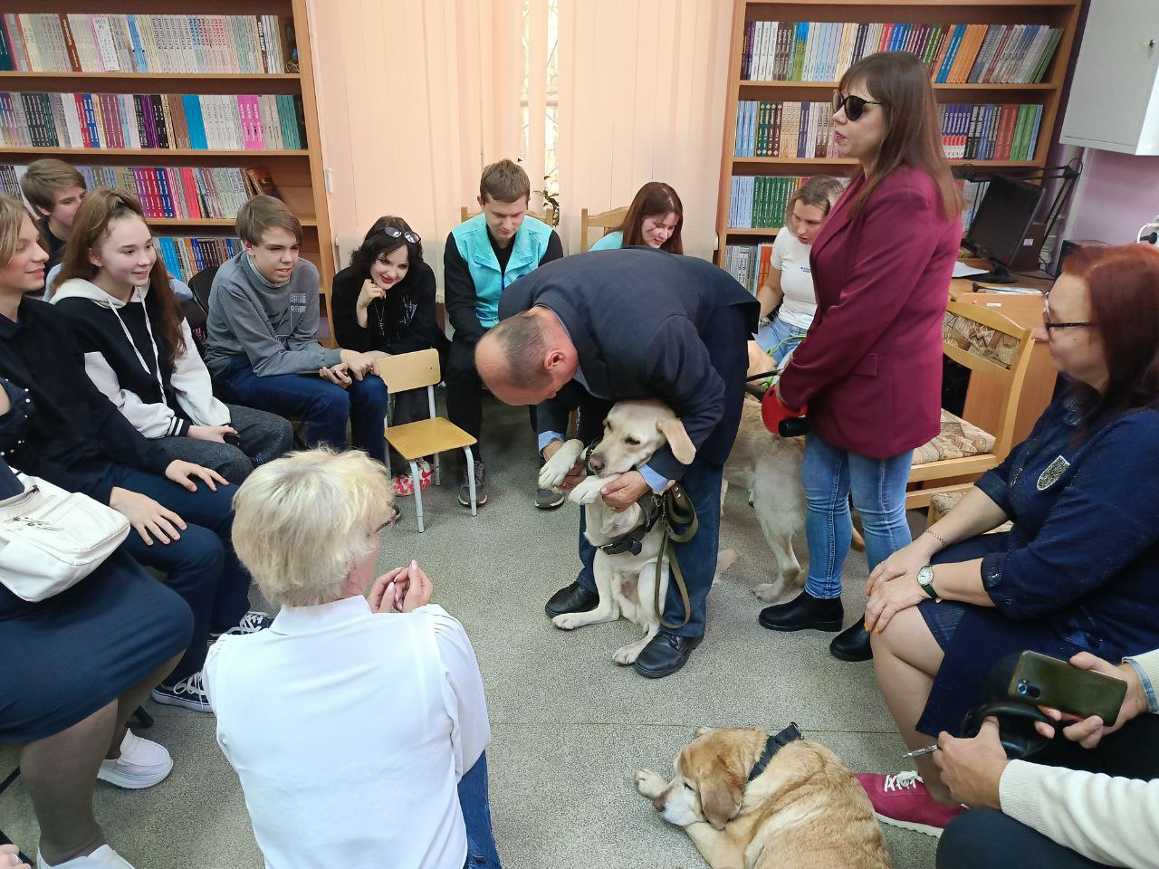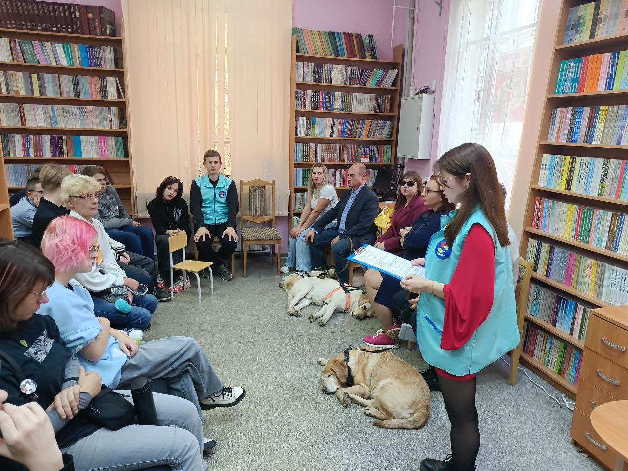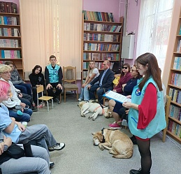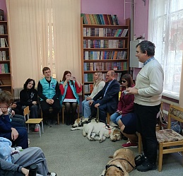 Серьезную деловую программу встречи оживило присутствие четвероногих помощников наших незрячих читателей Таби (владелец Дмитрий Зарипов), Бэтси (Ирина Яманова), Урмаса (Виктор Суконкин) и Флая (Светлана Каретина), ребята активно общались с ними.
