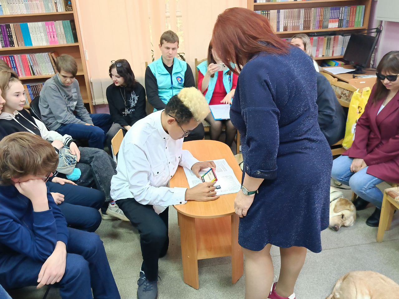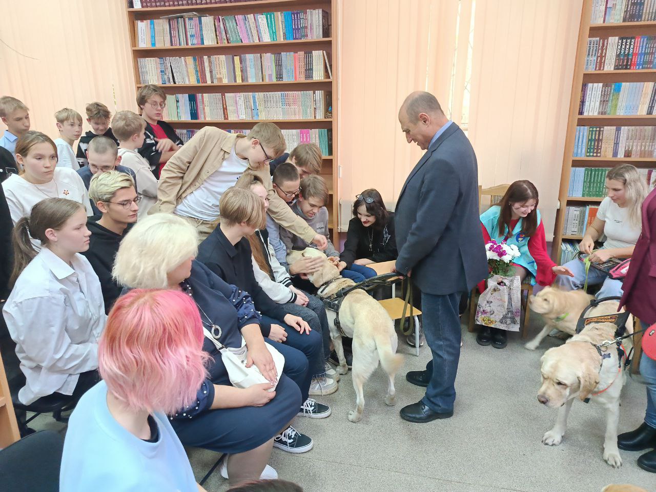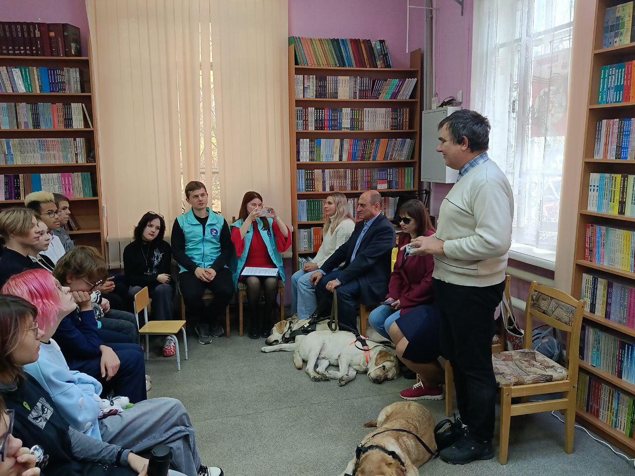 Серьезную деловую программу встречи оживило присутствие четвероногих помощников наших незрячих читателей Таби (владелец Дмитрий Зарипов), Бэтси (Ирина Яманова), Урмаса (Виктор Суконкин) и Флая (Светлана Каретина), ребята активно общались с ними.