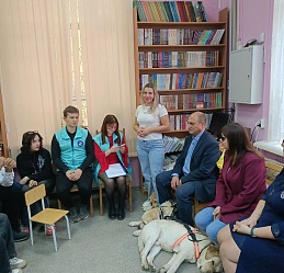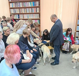 Библиотека благодарит Светлану Александровну Каретину, руководителя клуба владельцев собак-проводников «Вектор», и его членов за организацию такой важной реабилитационной познавательной встречи для подрастающего поколения, а также Виктора Васильевича Суконкина за пополнение брайлевского фонда рельефно-точечным изданием "Руководство по эксплуатации. Тифлофлешплеер DTBP-301".