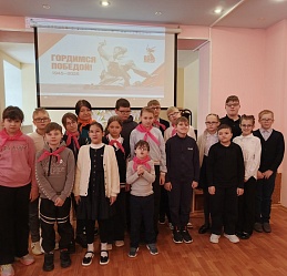 Общение со школьниками началось с вопросов-ответов на знание школьниками истории Великой Отечественной войны; выяснили, кого можно считать героем, и почему 13 городов Советского Союза были удостоены почетного звания «Город-герой». В беседе подробно остановились на героизме, мужестве и стойкости жителей и защитников четырёх городов-героев - Бреста (Брестской крепости), Москвы, Сталинграда и Ленинграда. Ребята ознакомились также с некоторыми страницами библиотечных изданий: сборника рассказов учащихся школы-интерната № 2 «Я помню! Я горжусь!» (2015 г.) и сборника воспоминаний читателей «Минувших лет живая память» (2021 г.). Тематический час прошёл при активности ребят, выразивших желание подготовить фестивальные творческие работы.