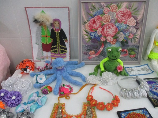 К мероприятию была оформлена выставка работ художественного творчества людей с ограниченными возможностями Шуйской МО ВОС. На выставке под названием «Особый взгляд» были представлены работы, выполненные в техниках канзаши, алмазной мозаики, также поделки из открыток и салфеток, вязаные изделия. Очень красивые поделки предоставили члены организации Поливанова Н.И., Филатова А.А. , Быкова Л.С.