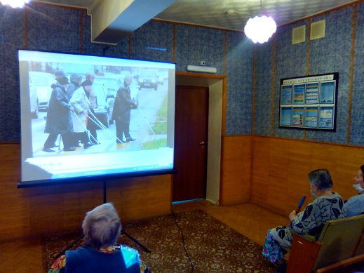 Просмотр тематического сообщения «Опора во тьме», подготовленного отделом внестационарного обслуживания в рамках Международного Дня Белой трости, состоялся в отделении временного проживания граждан пожилого возраста и инвалидов Фурмановского центра социального обслуживания.