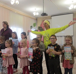 «Сказка о ленивых ножках» Софьи Прокофьевой в стихотворном изложении учителем-дефектологом детского сада компенсирующего вида № 146 Ниной Николаевной Волковой, проиллюстрированная детскими рисунками составила мультипликационный фильм, также вошедший в видеоролик, подготовленный библиотекой. Его презентация состоялась 26 ноября в ходе тематического занятия «Сказки мы читаем с мамой» на базе детского сада компенсирующего вида № 57 с участием сотрудников библиотеки, воспитанников и педагогов детского сада компенсирующего вида № 146. Все участники встречи, дети и взрослые, с воодушевлением поиграли-потанцевали в общем хороводе. В преддверии Дня матери юные художники разукрасили подарки-сердечки для мам и бабушек, прочитали стихи в их честь.