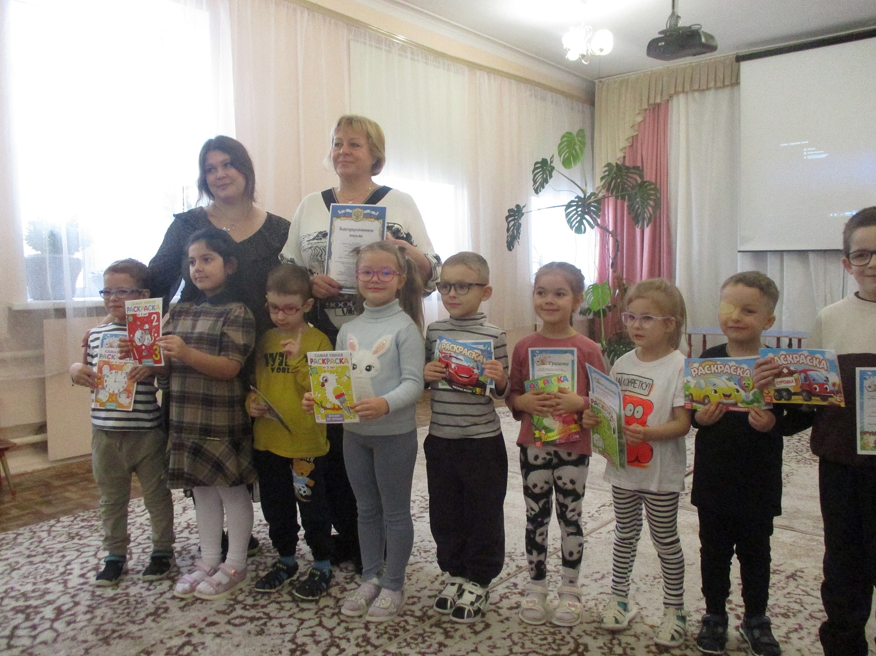 Все участники проекта были поощрены библиотекой: грамотами и раскрасками 28 воспитанников, благодарственными письмами 11 педагогов.