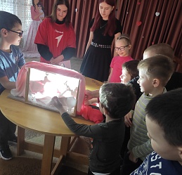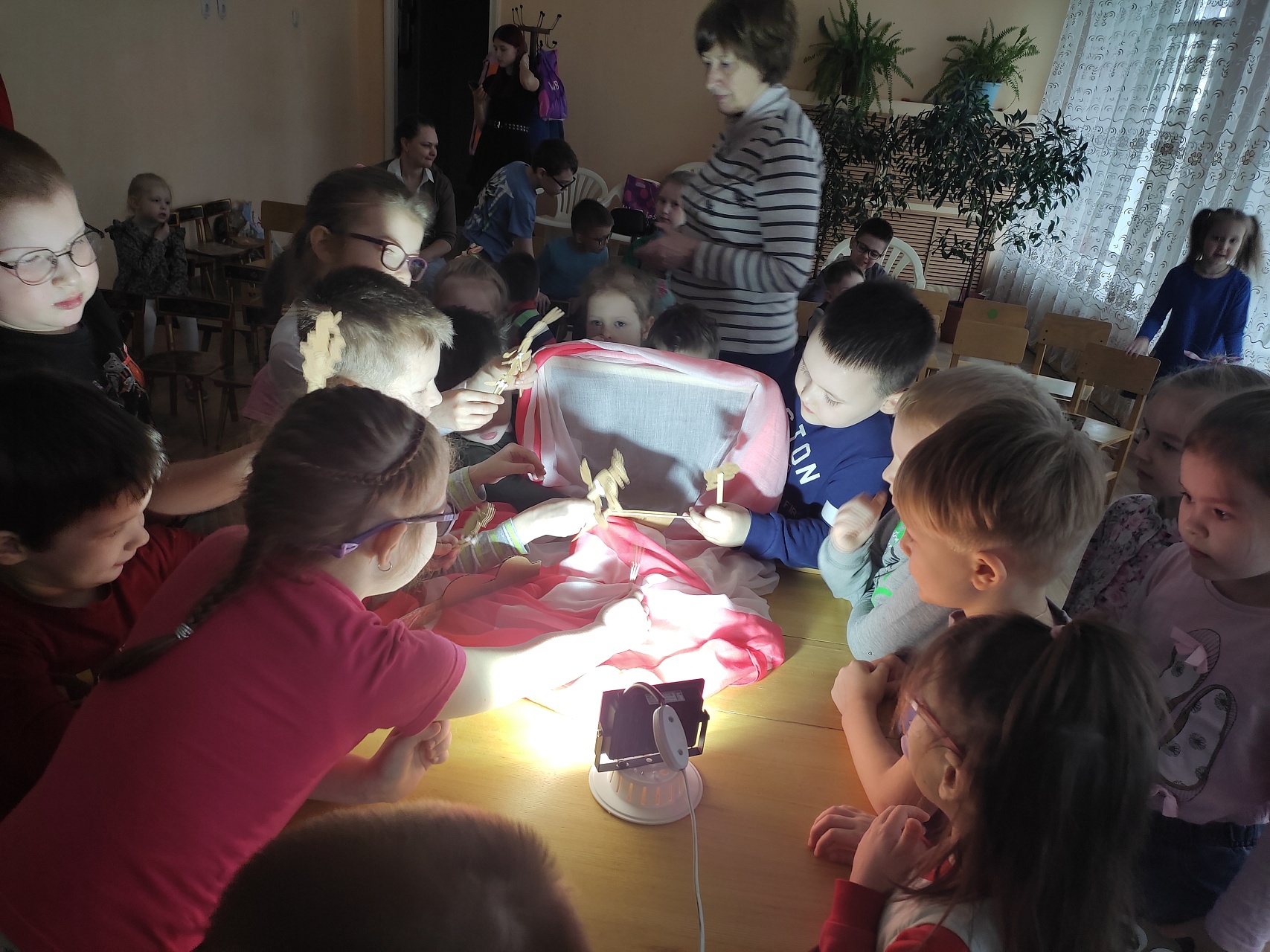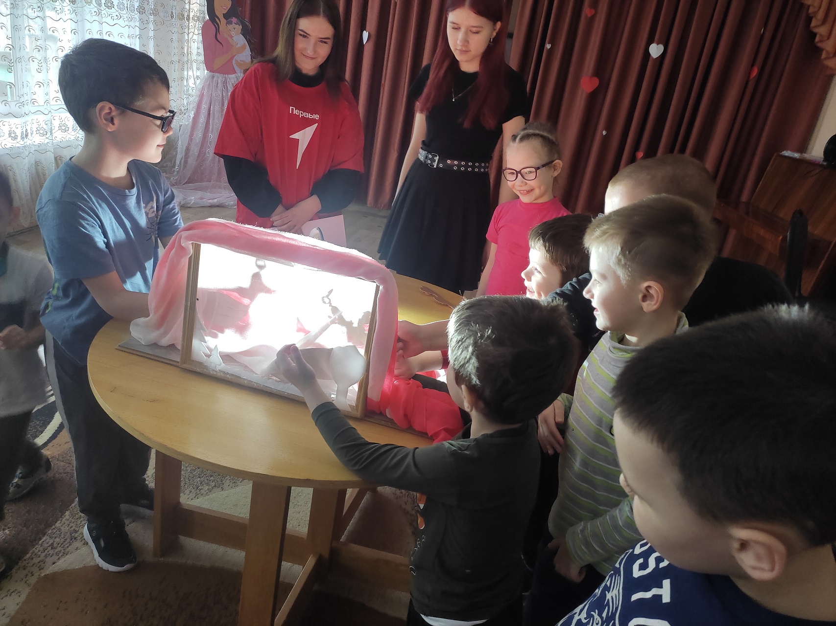 Для воспитанников детского сада компенсирующего вида №7 (г Кинешма) состоялся теневой театр по мотивам сказки В. Г. Сутеева «Палочка-выручалочка», который провели активисты первичного отделения «Движение Первых».