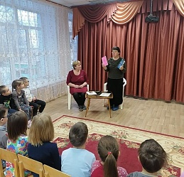 Елена Александровна совершила с ребятами увлекательное путешествие по страницам своих книг: «Мама расскажи сказку», «Мамины сказки – лучшее лекарство», «Где в лесу растут иголки». Дети с удовольствием прослушали сказку «Катина тарелочка» и поразмышляли о добре и зле; отгадывали загадки, слушали стихи и песни в исполнении автора.