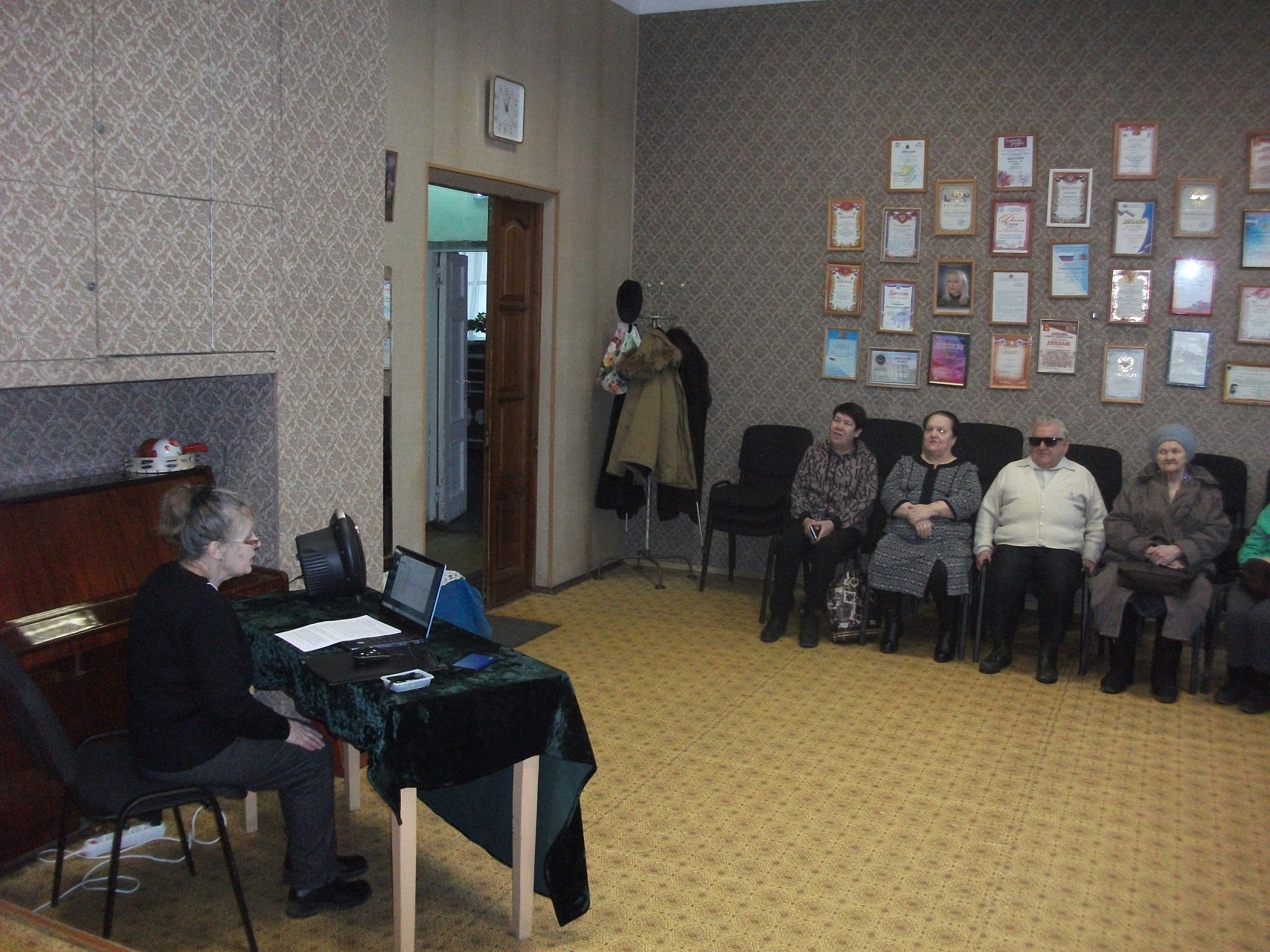 На январской встрече в реабилитационном клубе «От всей души», состоявшейся 28 января в рамках проекта «ВОС: Заветная страна», прозвучали в аудиозаписи песенные произведения из оцифрованного библиотекой музыкального архива Ивановского Дома культуры ВОС. Знакомство с историей создания и развития восовских самодеятельных коллективов стало одним из традиционных направлений библиотечной деятельности: в этот раз беседовали об истории народного коллектива самодеятельного творчества академического женского хора. Вспомнили имена руководителей, участников этого прославленного коллектива, в репертуаре которого со дня создания были не только произведения русских и зарубежных классиков, советских композиторов, но и народные песни.