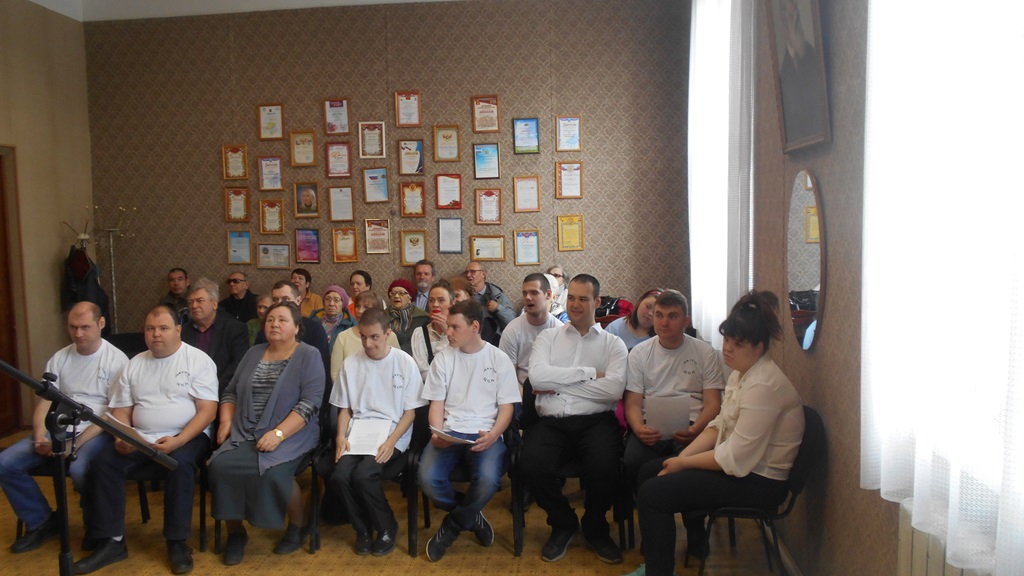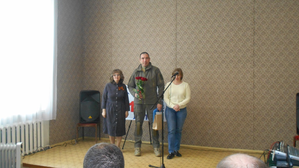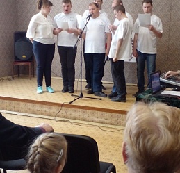 В этот день в уютном помещении «Хоровой» комнаты Дома культуры ВОС на улице Октябрьской в исполнении студии эстрадного вокала областной организации ВОС (руководитель Александр Бабанов), гостей - молодых инвалидов Центра «На Московской» прозвучали песни военной и патриотической тематики, созданные не только в годы войны, но и спустя десятилетия после Дня Великой Победы, в том числе, и впервые прозвучавшие в художественных кинолентах. Очень лирические песни, как например, «Тёмная ночь» Н. Богословского и В. Агапова; трогательно-патриотические, как «Здесь птицы не поют» Б. Окуджавы, песня-благодарность солдатам Великой Отечественной войны со строчками «… за то ,что мальчики войну узнали только на бумаге», песни о нашей Родине, поэтические строки А. Твардовского из поэмы «Книга о бойце» (читал Виктор Шинкоренко); стихотворение – призыв детей к миру «Хотим под мирным небом жить» Н. Найдёновой (читала Тоня Сахарова) создали чувство невероятного единения участников встречи разных поколений.