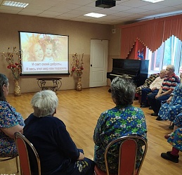 В отделении временного проживания граждан пожилого возраста и инвалидов Наволокского комплексного центра социального обслуживания населения, в рамках сотрудничества с Ивановской областной библиотекой для слепых, состоялась виртуальная концертная программа «Нежной, ласковой самой…», подготовленная группой стационарного обслуживания.