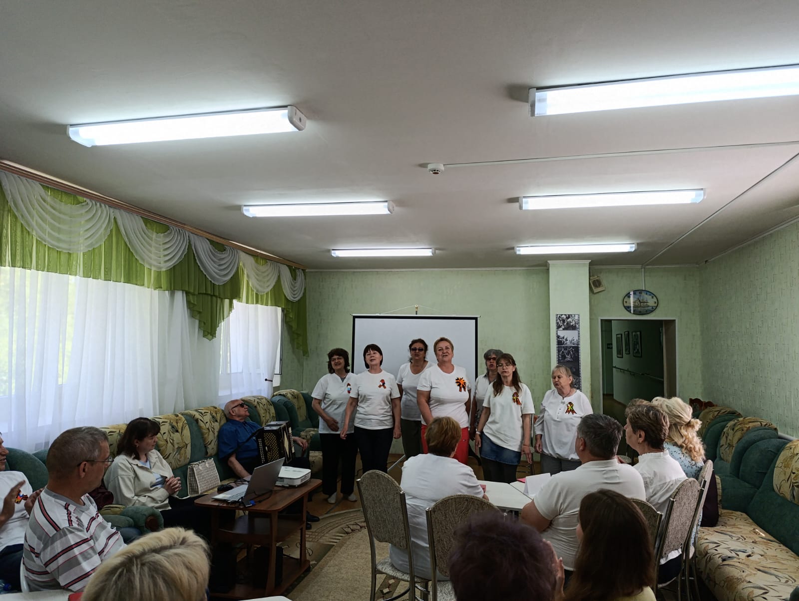 Особую атмосферу создало музыкальное выступление вокального ансамбля «Калинушка» и Марии Яковлевой. Под аккомпанемент Сергея Сизова всеми участниками были трогательно исполнены песни военных лет.