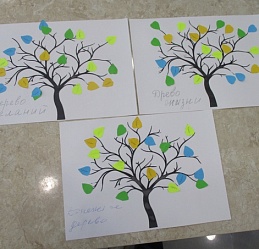 В рубрике программы «Наши руки не для скуки» были проведены: информационная беседа «Библиотека тактильных образов», ознакомившая участников семинара с проектом Российской государственной библиотеки для слепых, которая даёт возможность незрячим и слабовидящим людям разных возрастов воспринимать различные предметы и объекты окружающего мира, не доступных для непосредственного восприятия в реальной жизни. Слушатели с интересом, разбивших на команды, выполняли задания по распознаванию различных изображений на тифлопособиях (транспорт, животные и другие предметы), украшали деревья на рельефной графике: в результате получили «Древо жизни», «Дерево желаний» и «Денежное дерево». С не меньшим воодушевлением трудились и над созданием «Весеннего букета» из цветной бумаги, справляясь с нелегкими для людей с нарушением зрения и его отсутствия, этапами его создания: аккуратно пользуясь ножницами приготовить заготовку и с помощью клея и небольших по размеру заготовок цветов украсить.