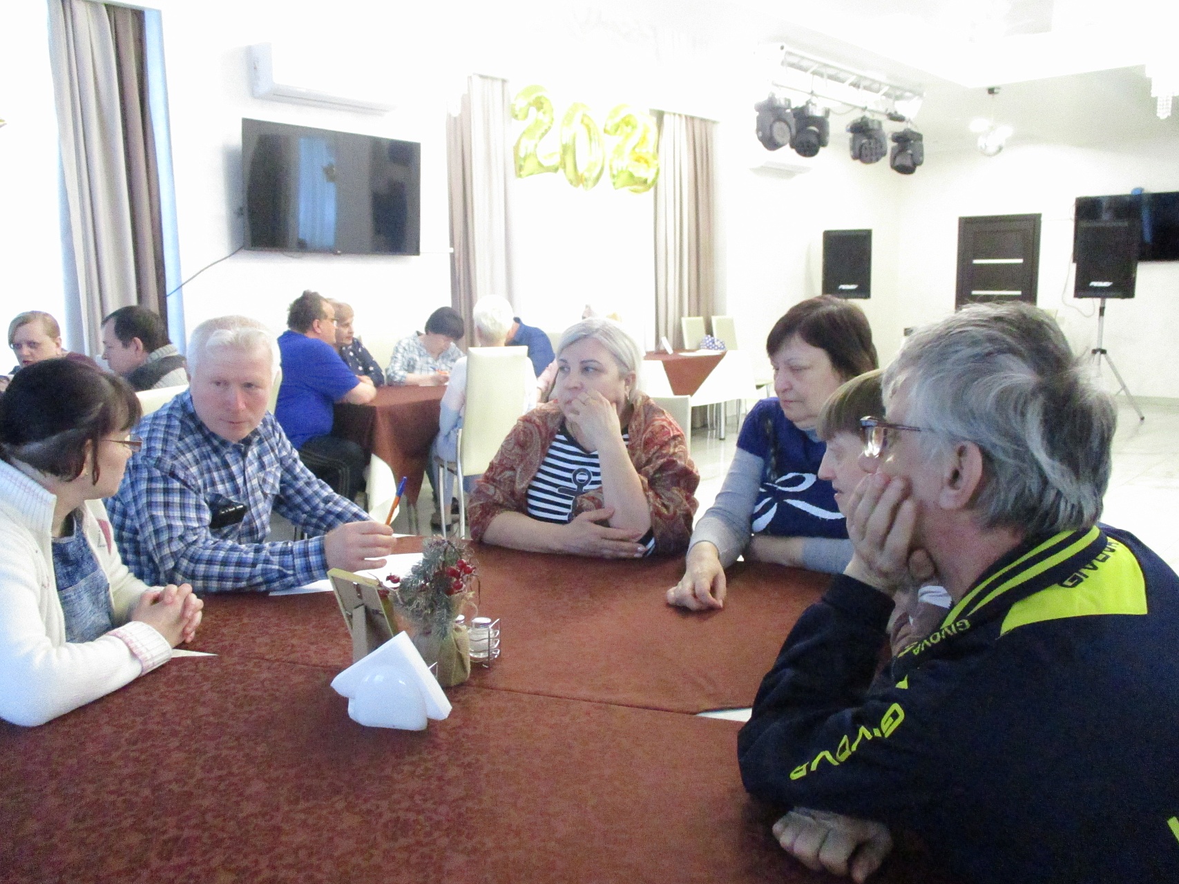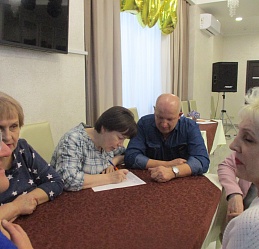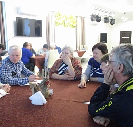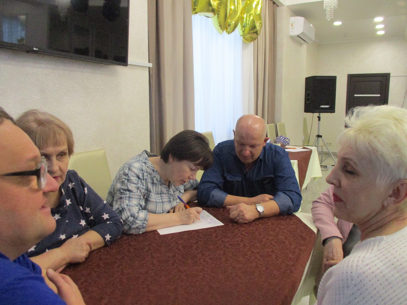 Содержательной получилась и командная ролевая игра «Встреча в кафе: соединение идей», в основе которой были использованы принципы движения «Мировое кафе», когда обсуждаются определённые проблемы и находятся пути для их решения. Командам предлагалось обсудить следующие вопросы: «Как оживить деятельность восовской организации?», «Как и чем привлечь молодых инвалидов по зрению в общество слепых?» и «Какие кружки /клубы по интересам нужны в организации?». Работа в командах была плодотворной, никто из восовцев не остался равнодушным, не оказался «в стороне», поскольку речь шла об улучшении жизни своей родной организации – это ощущалось по гулу голосов, сопровождавших процесс обсуждения. Итог работы «Мирового восовского кафе» подвела Ирина Короткова, и вновь все активно общались, делясь опытом и предлагая идеи.