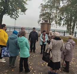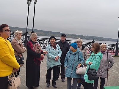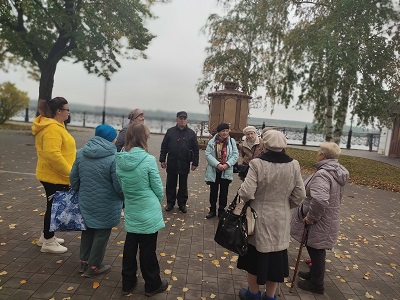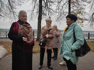 Вместе с заведующей историческим отделом Кинешемского художественно-исторического музея Натальей Рудольфовной Шепелевой участники встречи совершили необычное путешествие, прогулялись по волжскому бульвару. В ходе экскурсии узнали, что волжский бульвар как бульвар появляется приблизительно в середине 19 века, когда стал формироваться известный ныне архитектурный ансамбль зданий. На Большом бульваре строили здания общественной значимости, на Малом бульваре стояли частные владения. Начинается Волжский бульвар с дома, в котором сейчас находится ресторан-гостиница «Русская изба», а в прошлом располагалась чайная Общества трезвости.