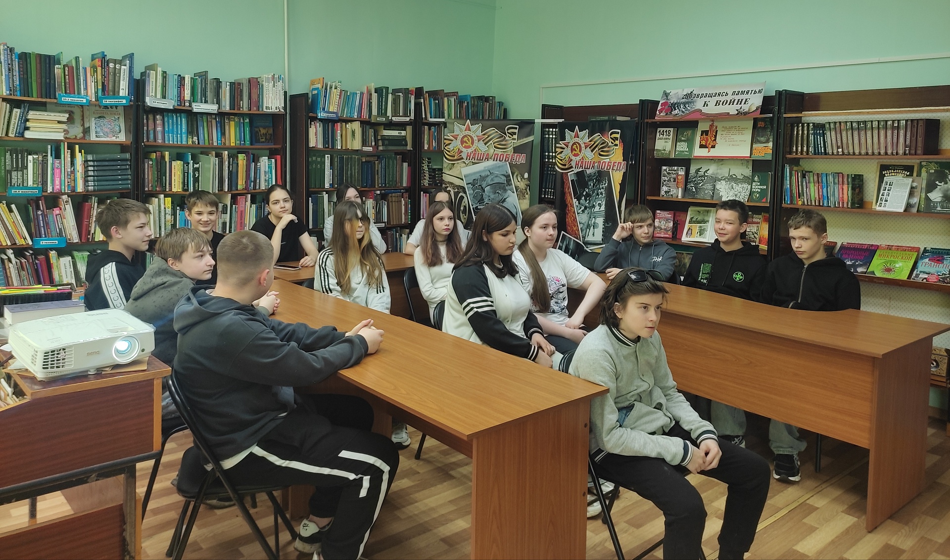 Ведущий библиотекарь Кинешемского филиала №1 Марина Горбачева приняла участие в уроке памяти «Подвигом славны твои земляки», состоявшемся 18 апреля в библиотеке – филиале №2 МУ КГЦБС для учащихся 7 класса школы №10.