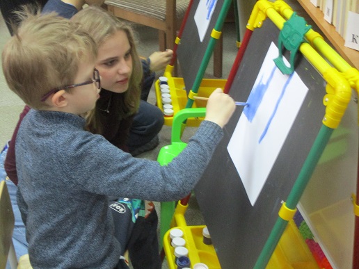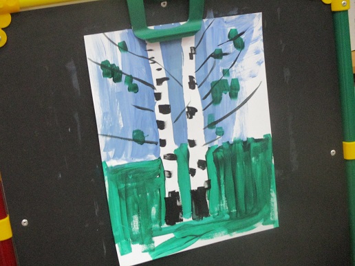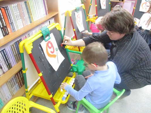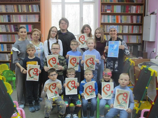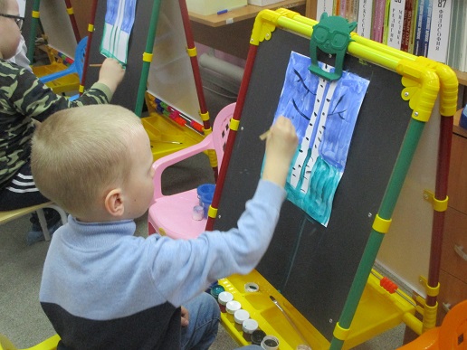 Воспитанники подготовительной группы детского сада компенсирующего вида № 57 вновь пришли в библиотеку 26 апреля на занятие в Арт-мастерской «Синяя птица». По уже сложившейся традиции, волонтёры-студенты Художественного училища им. М.И. Малютина, предложили своим «ученикам» выполнить два предметно-тематических задания: изобразить берёзку с первой весенней листвой и выполнить открытку ко Дню Победы с элементами аппликации.