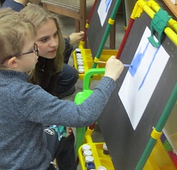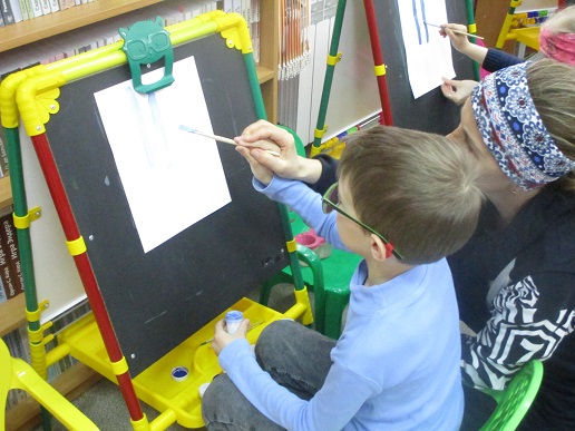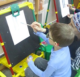 Расположившись за мольбертами, юные художники со старанием приступили к выполнению заданий. Рисование – не только действенный способ развития мелкой моторики, но и возможность выразить свои эмоции. Кроме того, рисование помогает ребёнку стать усидчивее, что также важно для будущих школьников.