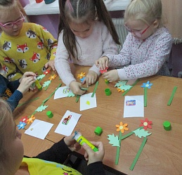 Необычное занятие под названием «День добра и уважения» прошло 4 октября в Арт-мастерской «Синяя птица». Воспитанников подготовительной группы детского сада компенсирующего вида № 57 не ожидали мольберты, краски и кисти – детям предстояло потрудиться над изготовлением букета-подарка для старших членов семьи; но сначала состоялся обстоятельный разговор-беседа о семье, о том, как надо заботиться друг о друге, особенно о бабушках и дедушках. Иллюстрацией общения стали Копилка добрых дел, показ мультфильма «Мама устала» из доброго мультсериала о жизни одной семьи «Про Миру и Гошу», фрагмента обучающего и развивающего мультфильма «Три котёнка» с обсуждением того, что значит быть воспитанным человеком и как важно помогать старшим и младшим. Дети с интересом и старанием принялись за составление букета: с этим заданием все успешно справились и, без сомнения, бабушки и дедушки обрадуются такому подарку, в котором – любовь и труд любимых внуков.