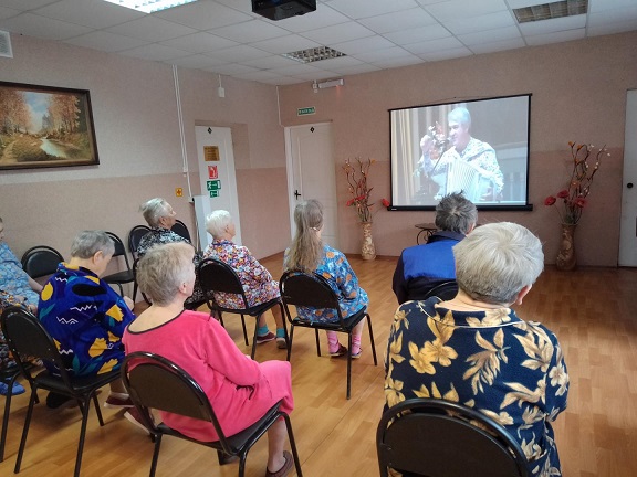 В отделении временного проживания граждан пожилого возраста и инвалидов Наволокского комплексного центра социального обслуживания населения состоялся просмотр виртуального литературно-музыкального часа «Гармонь моя любима» о творчестве известного российского музыканта, вокалиста, композитора, заслуженного артиста и исполнителя многих песен Валерия Семина.