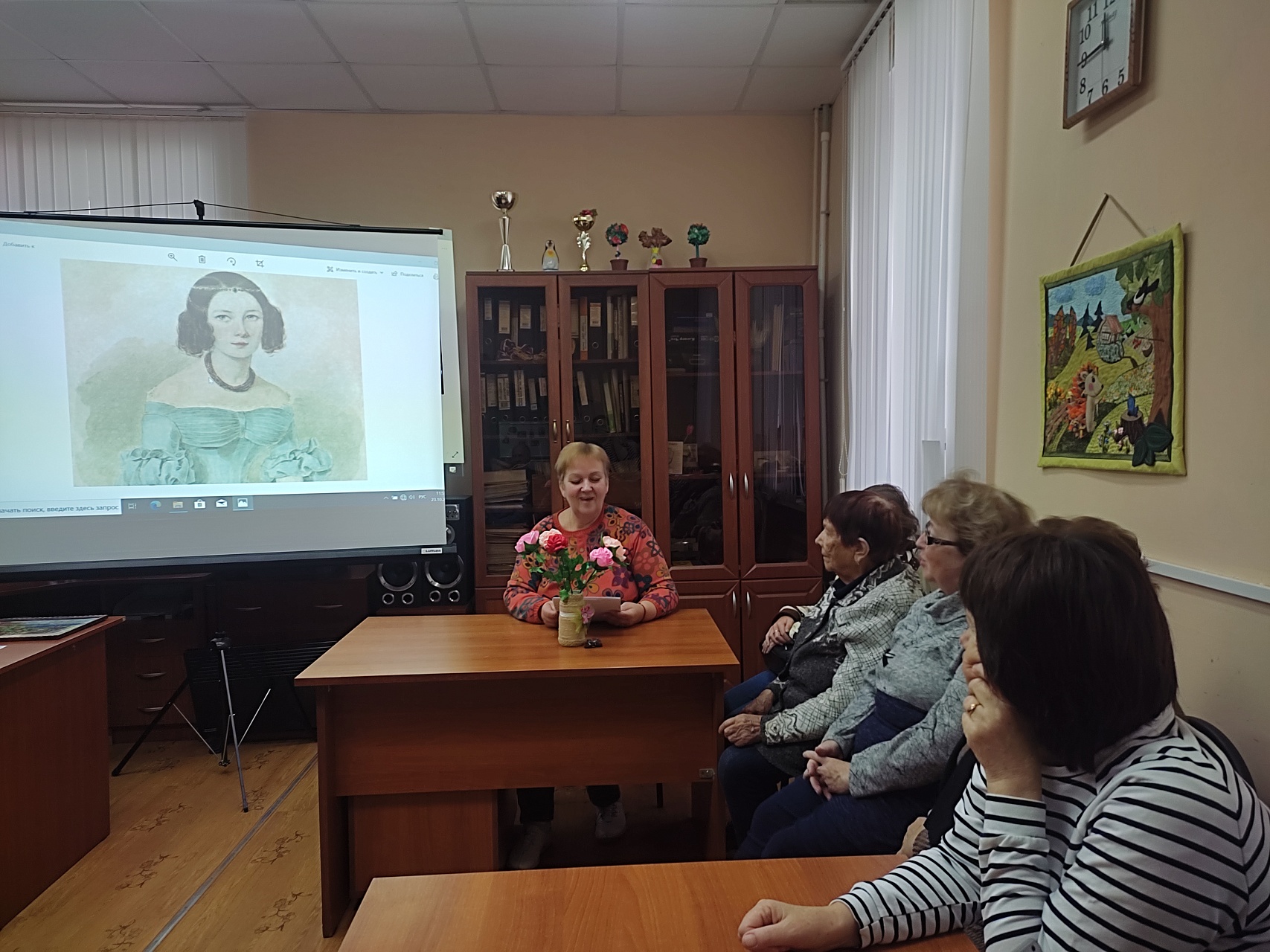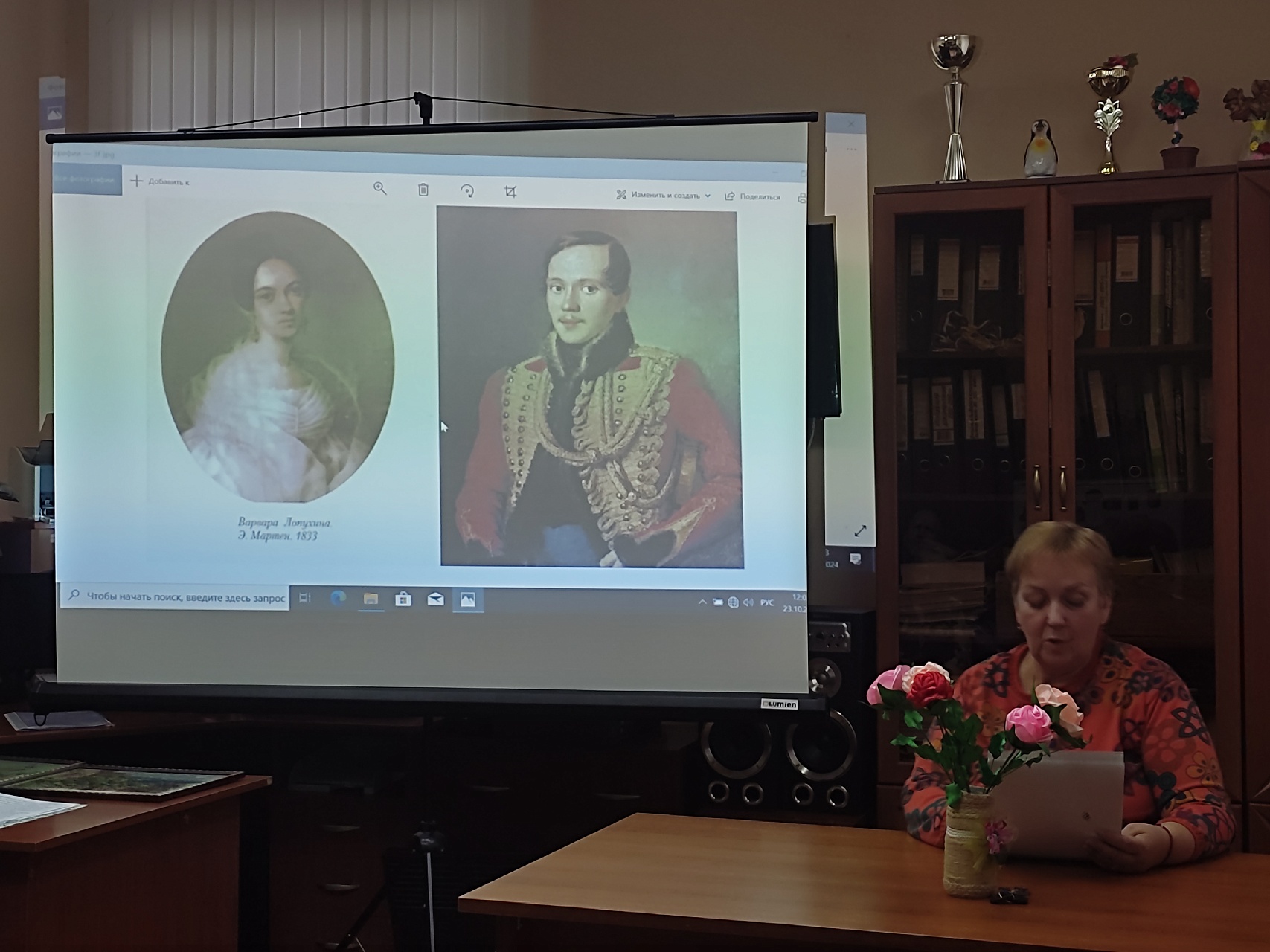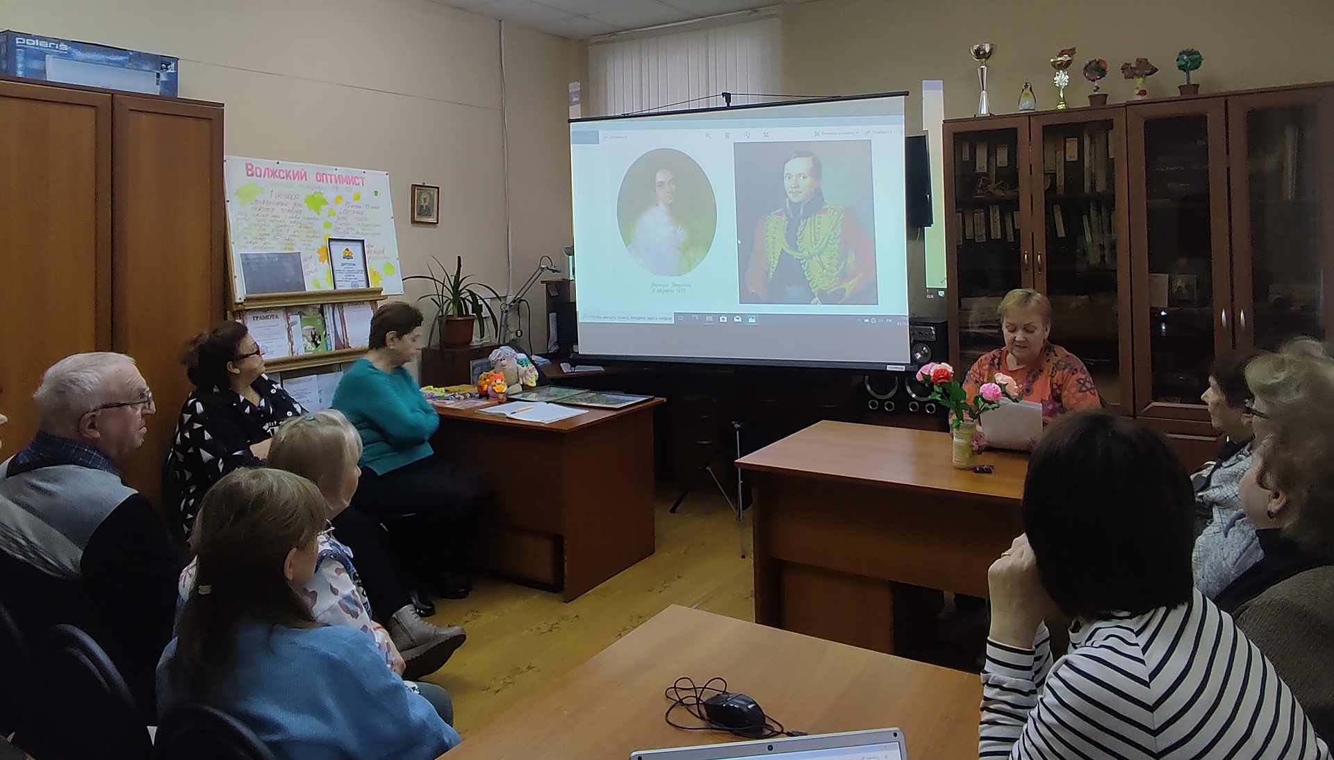 Из рассказа библиотекаря участники встречи узнали о земной музе поэта Варваре Александровне Лопухиной, вдохновившей его на создание целого цикла стихотворений, таких как «Она не гордой красотою…», «Расстались мы, но твой портрет», «Мы случайно сведены судьбой» и написание её портретов, ставших достоянием отечественной культуры.