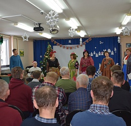 Для получателей социальных услуг Боготского психоневрологического интерната 15 января состоялся вечера отдыха «Старо-новогодние чудеса», который провели члены актива Кинешемского филиала №1. Ведущие вечера Марина Горбачева и Елена Давыдова поздравили собравшихся со Старым Новым годом, рассказали об истории и традициях его празднования. В программе вечера были песни у ёлки, хороводы, игры, загадки, конкурсы и веселый гороскоп. Театрализация Натальи Кляузовой и Людмилы Беловой в образе персонажей народных сказок подарили присутствующим положительные эмоции. Музыкальное сопровождение вечера осуществлял под гармонь Сергей Сизов.