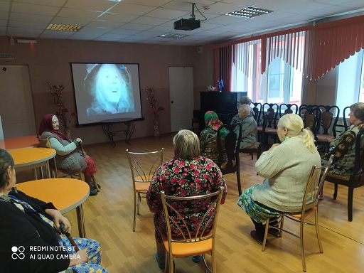 Просмотр комичных моментов из фильма «Девчата», под любимые песни, которые все знали и подпевали, создали у пожилых людей огромный заряд бодрости и хорошего настроения.