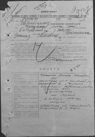 Отец воевал в в/ч 833 на Белорусском фронте. Постоянно писал письма жене и матери. В январе 1942 года письма перестали приходить. Бабушка Чекашкина Анастасия Леонтьевна стала делать запросы в Ивановский РВК для того, чтобы узнать о своем сыне – моём отце. Всю войну мы так и не узнали, где он. Лишь только в мае 1946 года маме прислали бумагу о том, что Чекашкин Никита Иванович пропал без вести в марте 1942 года.
