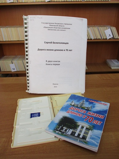 В 2010 году ивановский текстильный институт издал его книгу «Дорога жизни длиною в 70 лет». С согласи автора наша библиотека репродуцировала её в рельфно-точечный формат, можно прочитать и в электронном виде, на флешкарте, или скачав в Онлайн-Библиотеке av3715.ru.