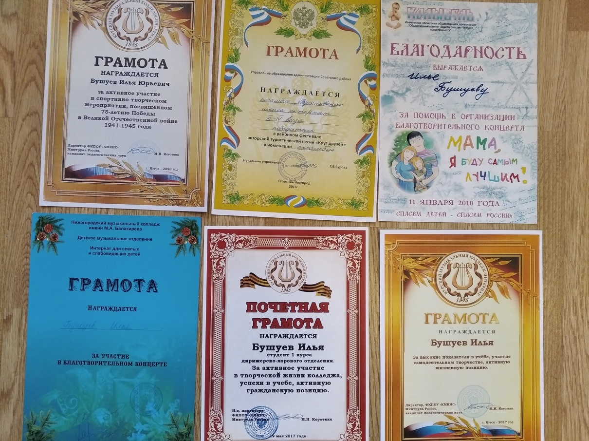 Выездная встреча в рамках этого проекта состоялась дома у наших читателей Ильи Бушуева и его мамы Ирины Борисовны. Этой встрече мы не зря дали такое название: "Через тернии к звёздам". Позади у Ильи насыщенные годы упорного труда, овеянные любовью к музыке: школа-интернат для слепых и слабовидящих детей, музыкальная школа при Нижегородской консерватории, Курский музыкальный колледж-интернат слепых, в настоящем - обучение в очень престижном высшем учебном заведении.