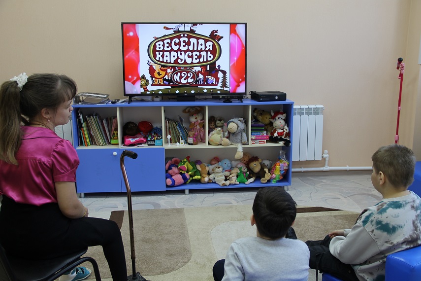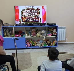 В рамках межведомственного сотрудничества с Ивановской областной специальной библиотекой для слепых в Заволжском центре социального обслуживания для молодых людей, посещающих отделение социальной реабилитации, состоялся просмотр виртуального песенного калейдоскопа «Веселая карусель».